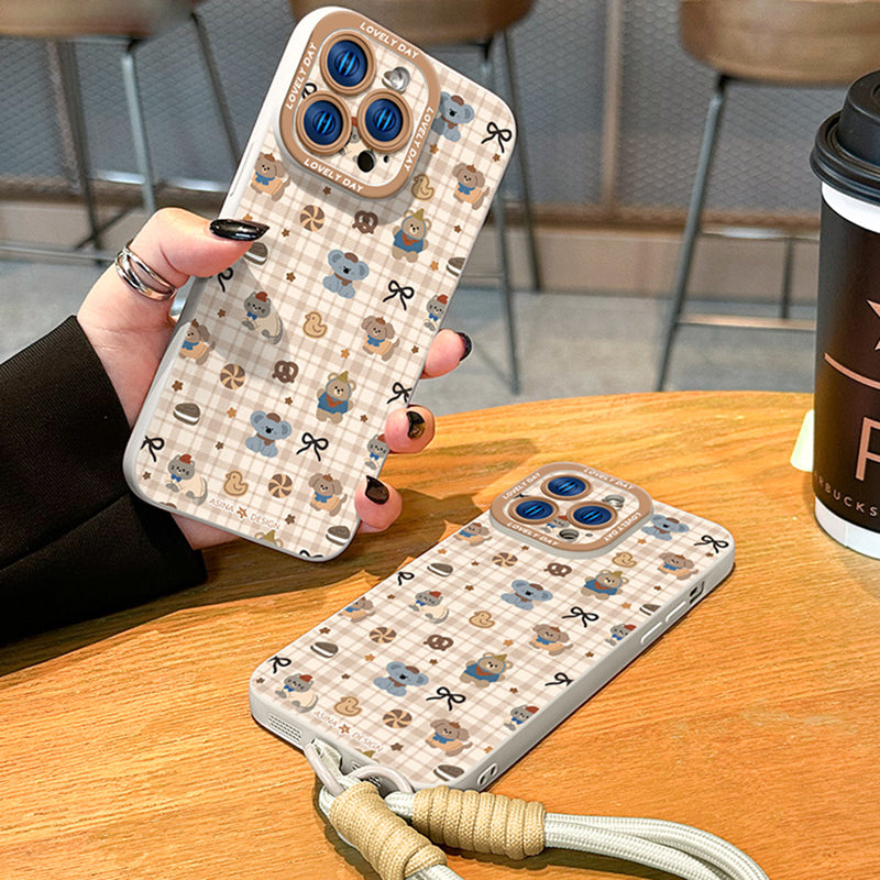 iPhone Lanyard Series | Cartoon Design Liquid Silicone Phone Case