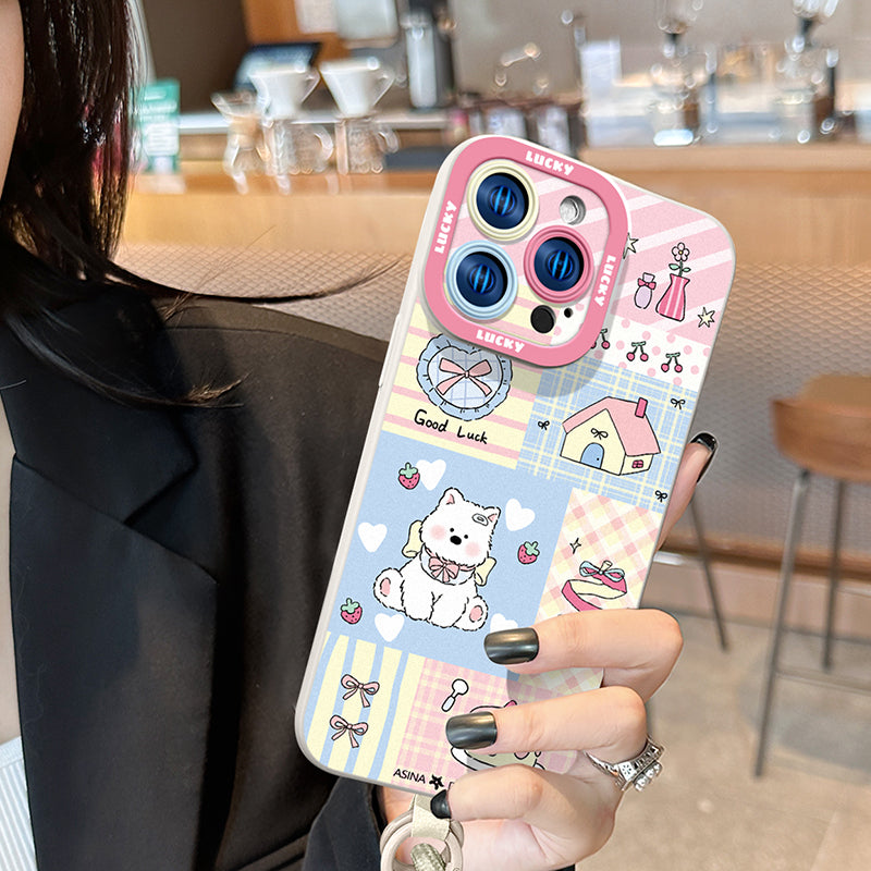 iPhone Lanyard Series | Cute Puppy Liquid Silicone Phone Case