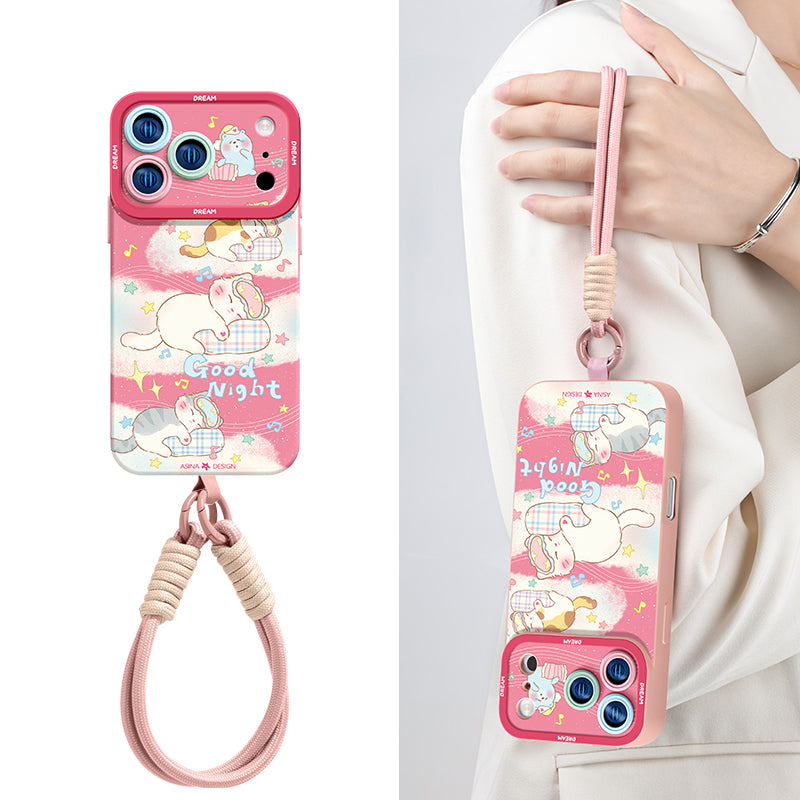 iPhone Lanyard Series | Sleeping Cat Liquid Silicone Phone Case
