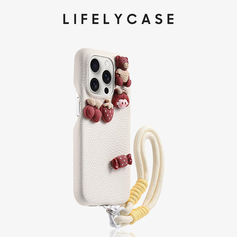 iPhone Lanyard Series | Genuine Leather Cartoon Phone Case