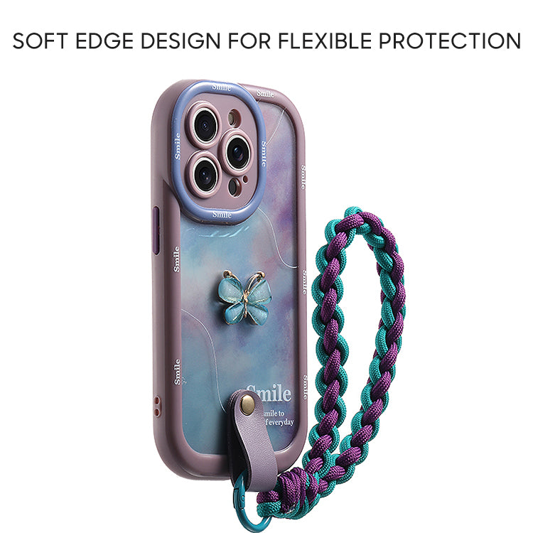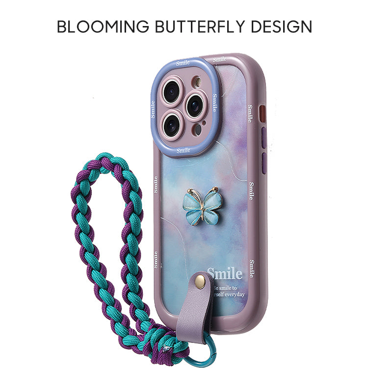 iPhone Lanyard Series | Rhinestone Butterfly Gradient Liquid Silicone Phone Case