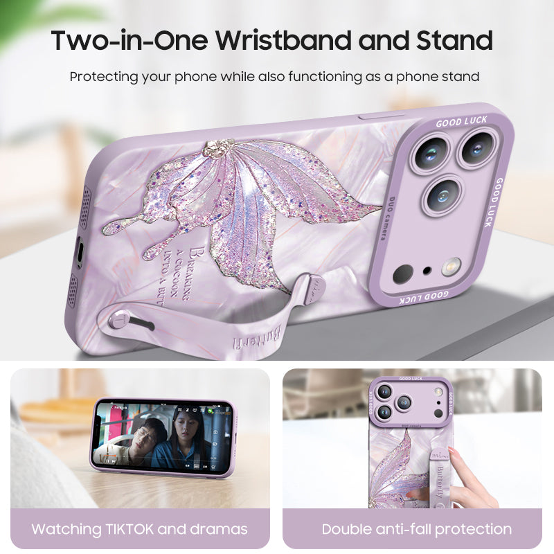 iPhone Wristband Series | "Gilded Butterfly" Liquid Silicone Phone Case