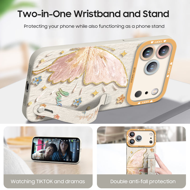 iPhone Wristband Series | "Golden-Edged Butterfly" Liquid Silicone Phone Case