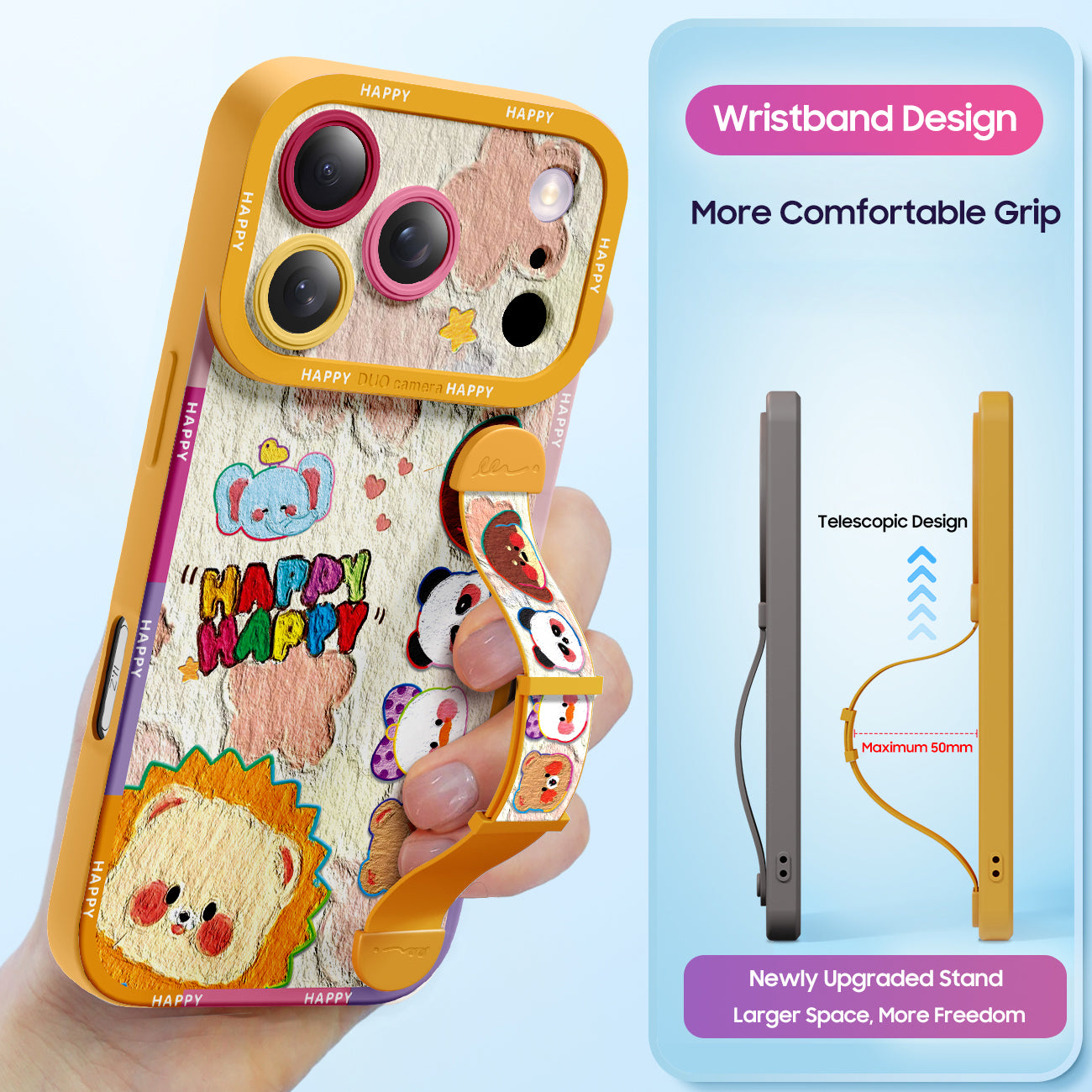 The built-in, adjustable and flexible wrist strap allows you to free your hands anytime, anywhere. Whether watching videos, making video calls, or browsing content, it provides stable support, enhancing comfort and convenience while ensuring the safety of your phone. Designed to balance practicality and aesthetics, it's the perfect choice for enhancing your iPhone experience.