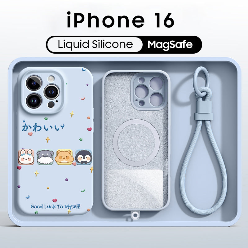iPhone Lanyard Series | Cartoon Liquid Silicone MagSafe Phone Case