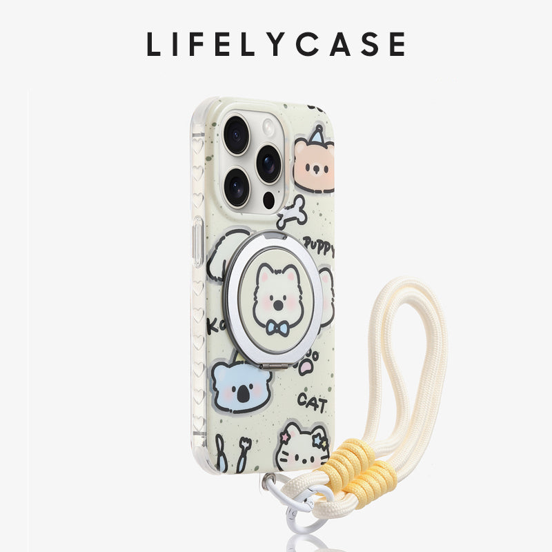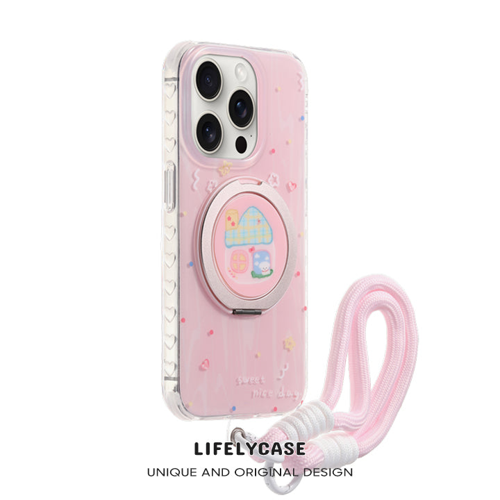 iPhone Lanyard Series | Folding Stand Cartoon Phone Case