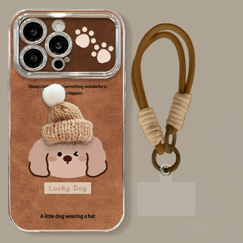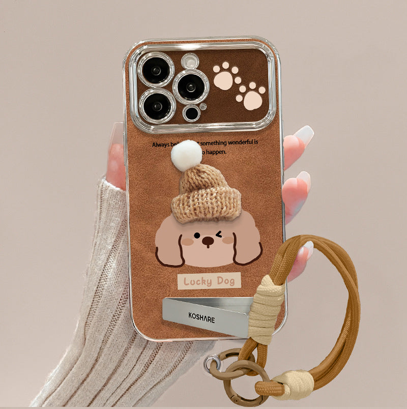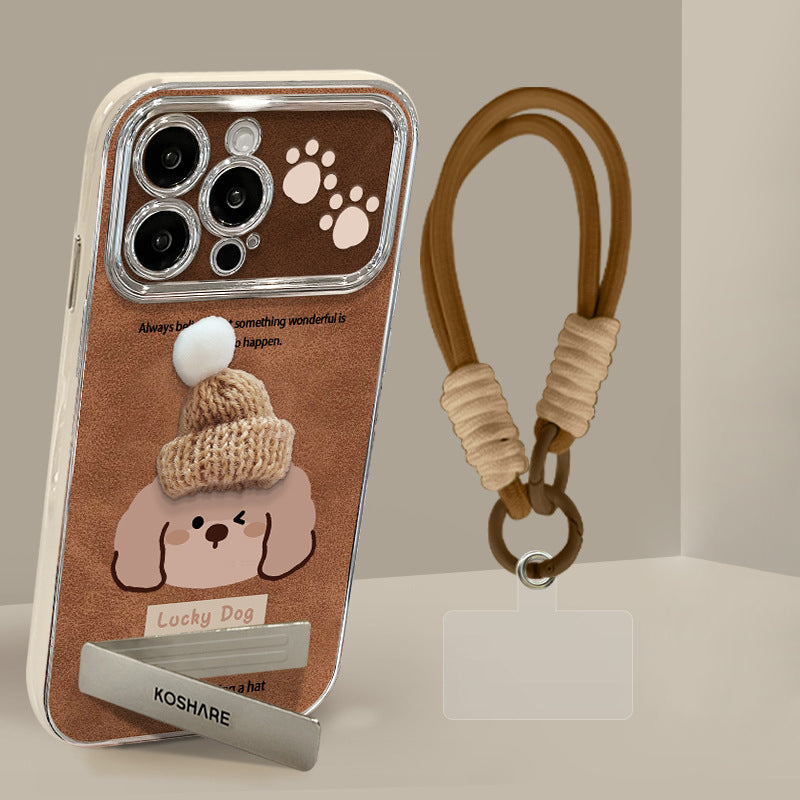 iPhone Lanyard Series | Puppy Wearing Hat Folding Stand Phone Case