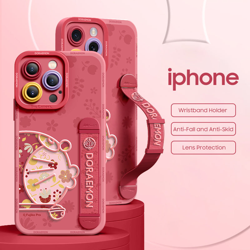 iPhone Wristband Series | Doraemon Cartoon Liquid Silicone Phone Case