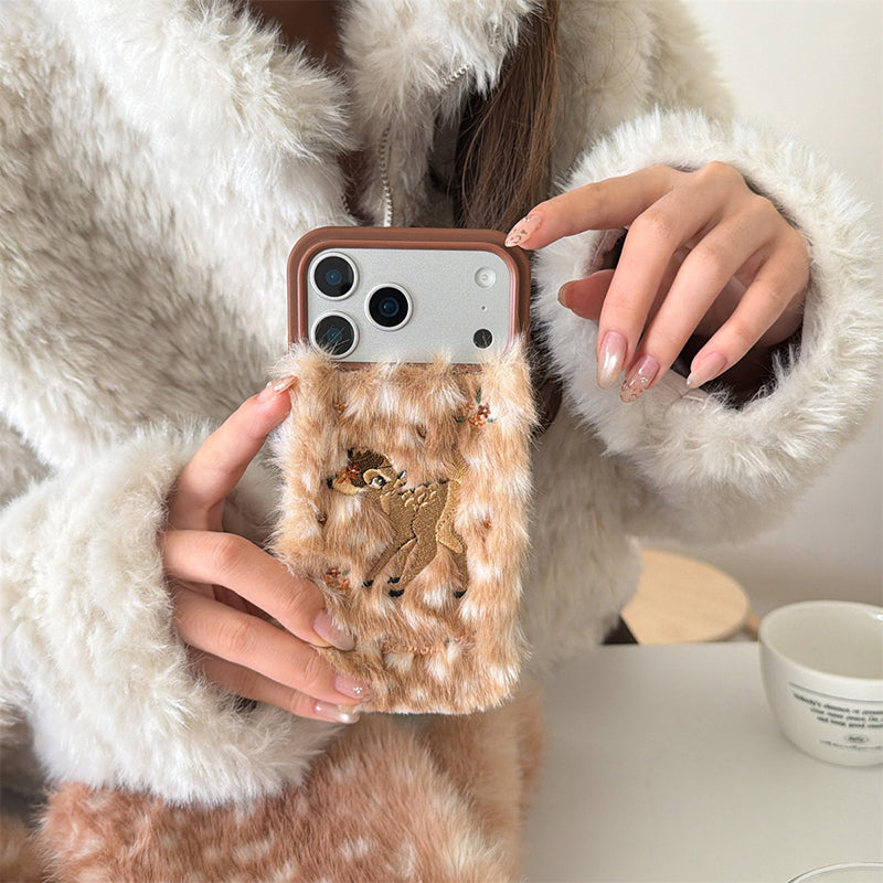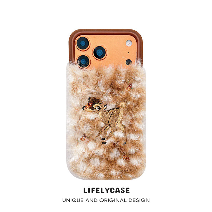 iPhone Series | Leopard-print deer Liquid Silicone Plush Phone Case
