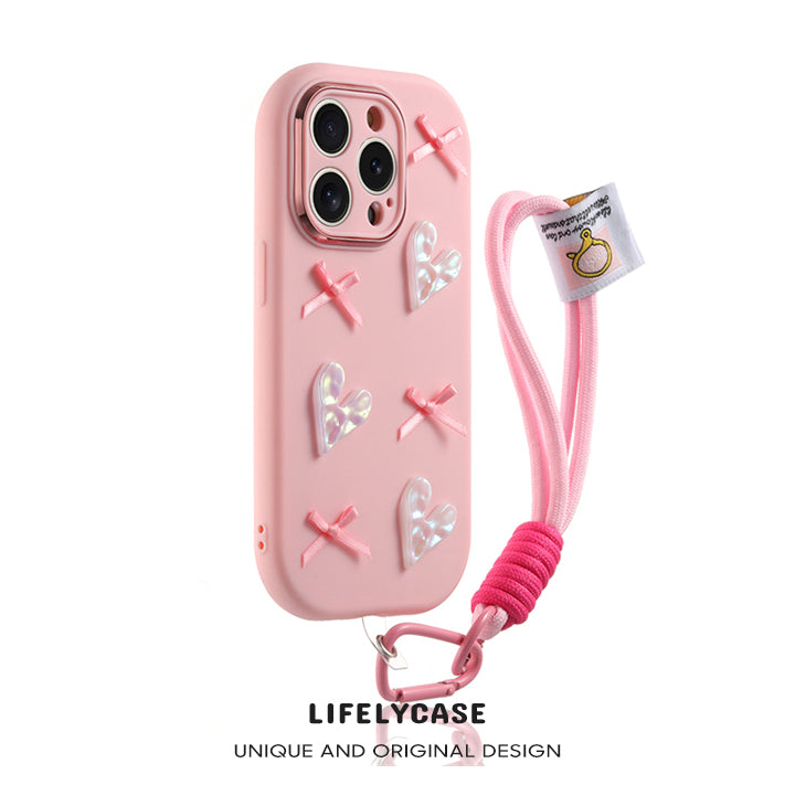 iPhone Lanyard Series | Ballet Style Love Bow Liquid Silicone Phone Case