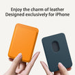 Crafted from specially tanned and finished European leather, the wallet features strong built-in magnets that place on the back of your iPhone. You can even stack it on top of a case with MagSafe to create a look that' s unique to you. The leather wallet supports up to three cards and is shielded so it's safe for credit cards.