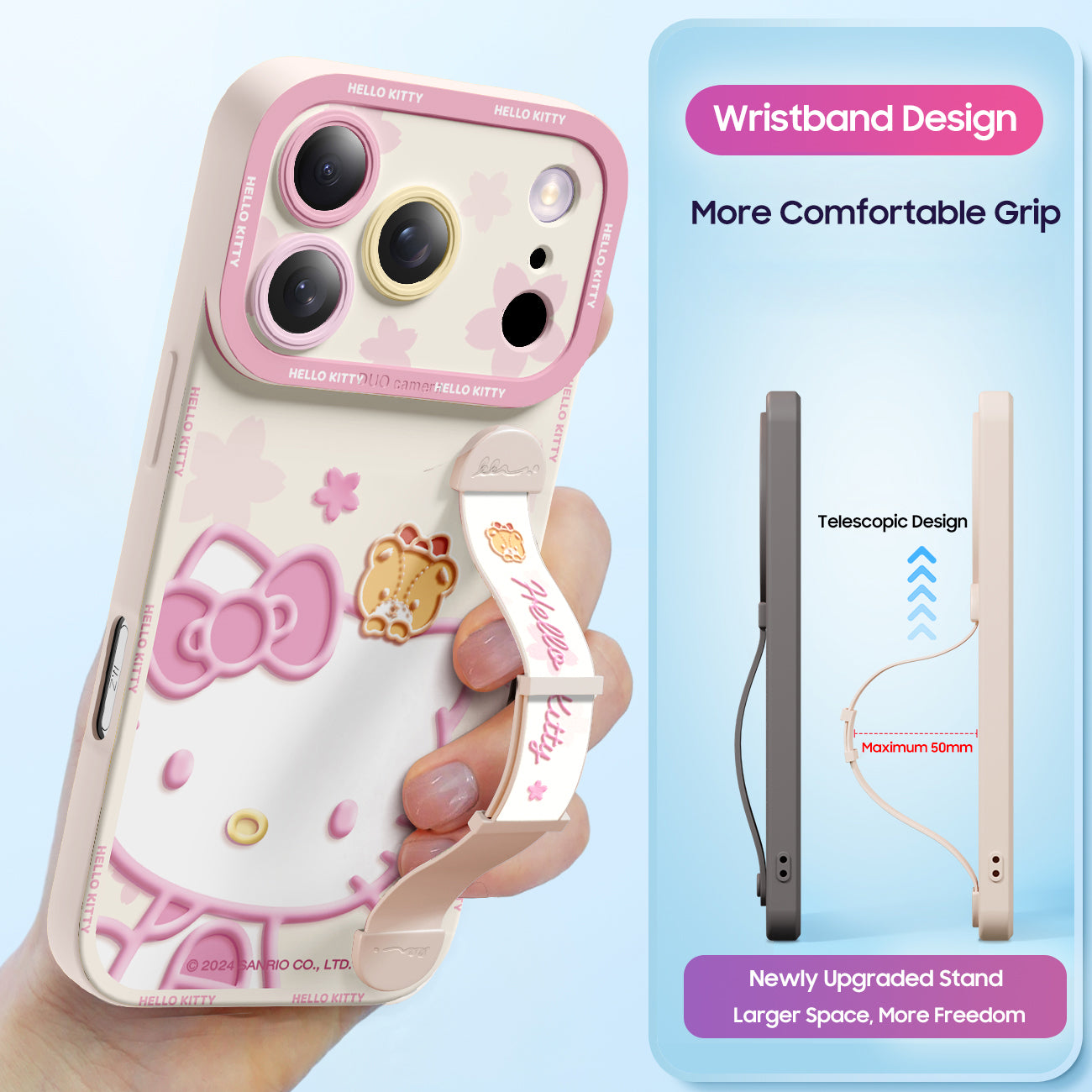 Soporte integrado para correa de muñeca ajustable y flexible. Ideal para usar en cualquier lugar. Libera tus manos cuando miras programas, videollamadas u otros vídeos en tu teléfono.