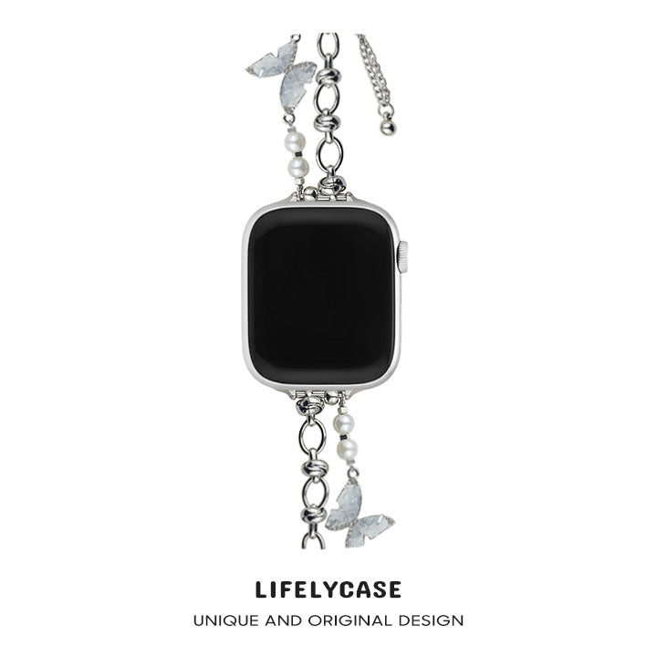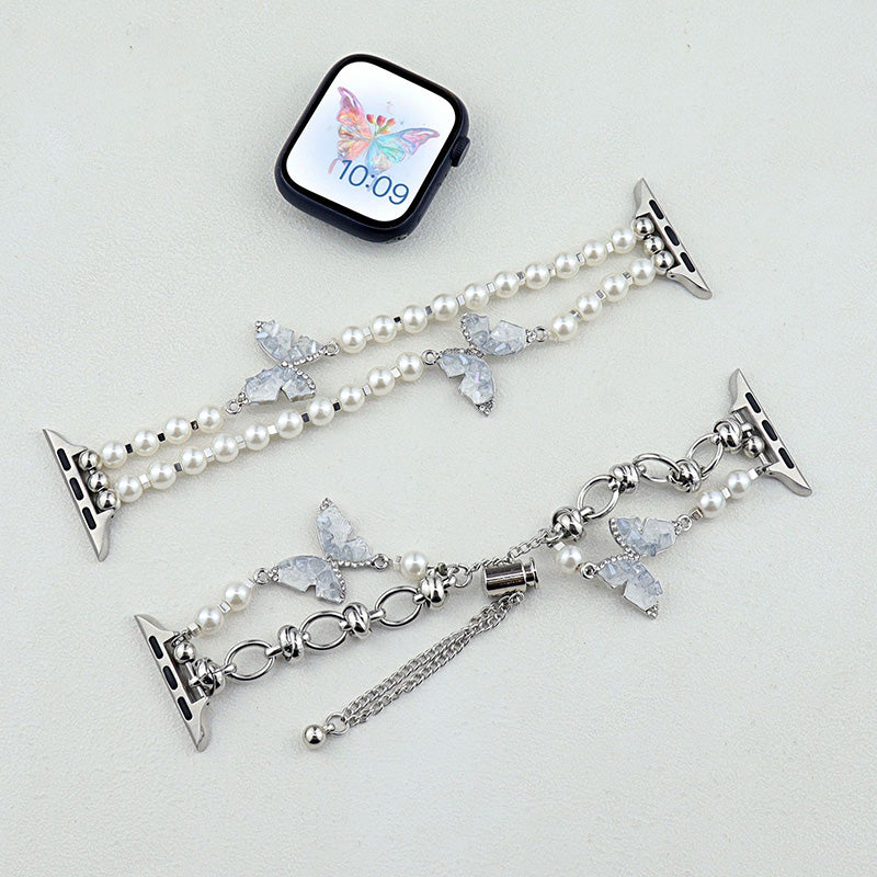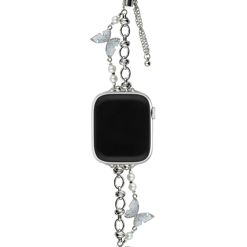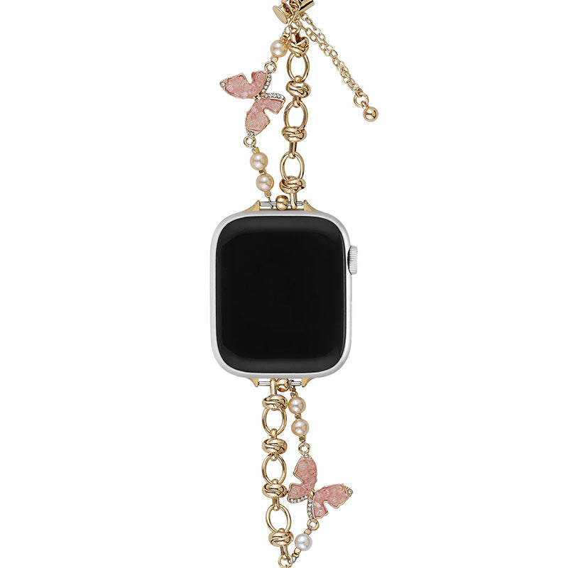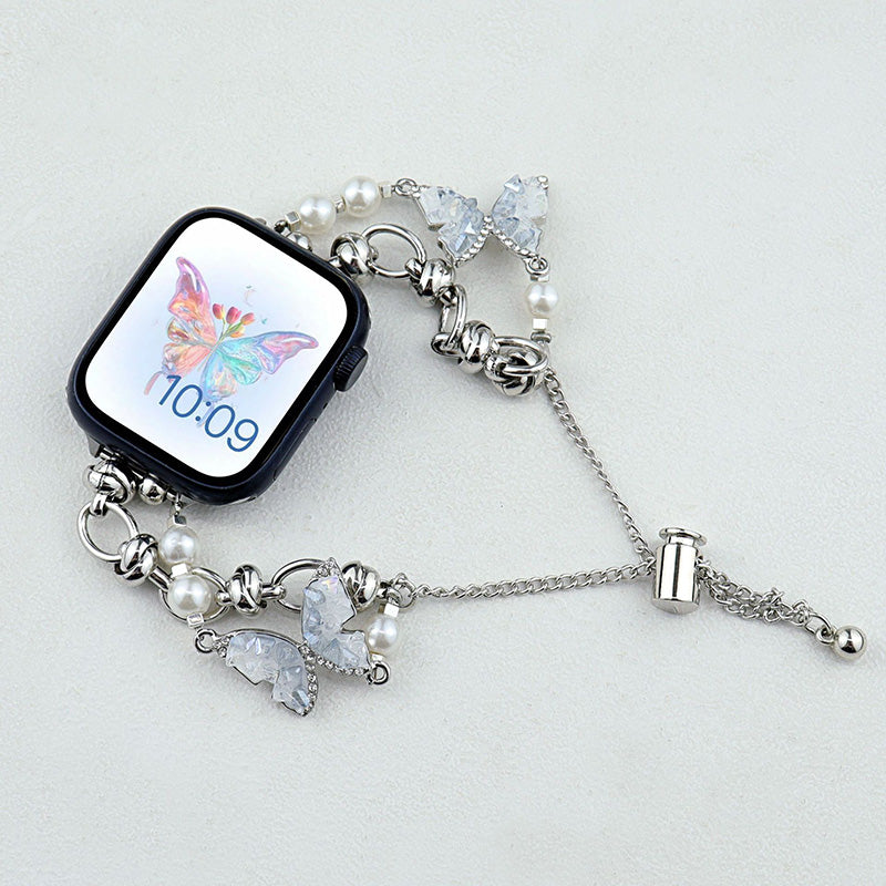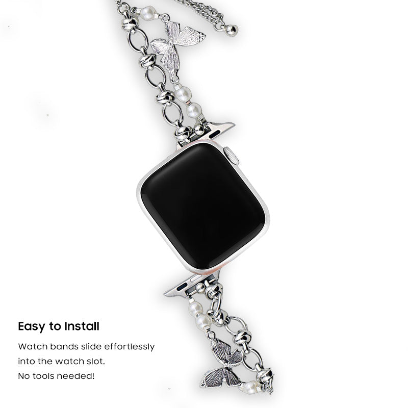 Upgrade your Apple Watch with our Double Butterfly Chain Watch Band. The dual-layered chain design adds a touch of elegance, while the sparkling butterfly accents bring a touch of glamour to your wrist. Elevate your style with this sleek and sophisticated accessory.