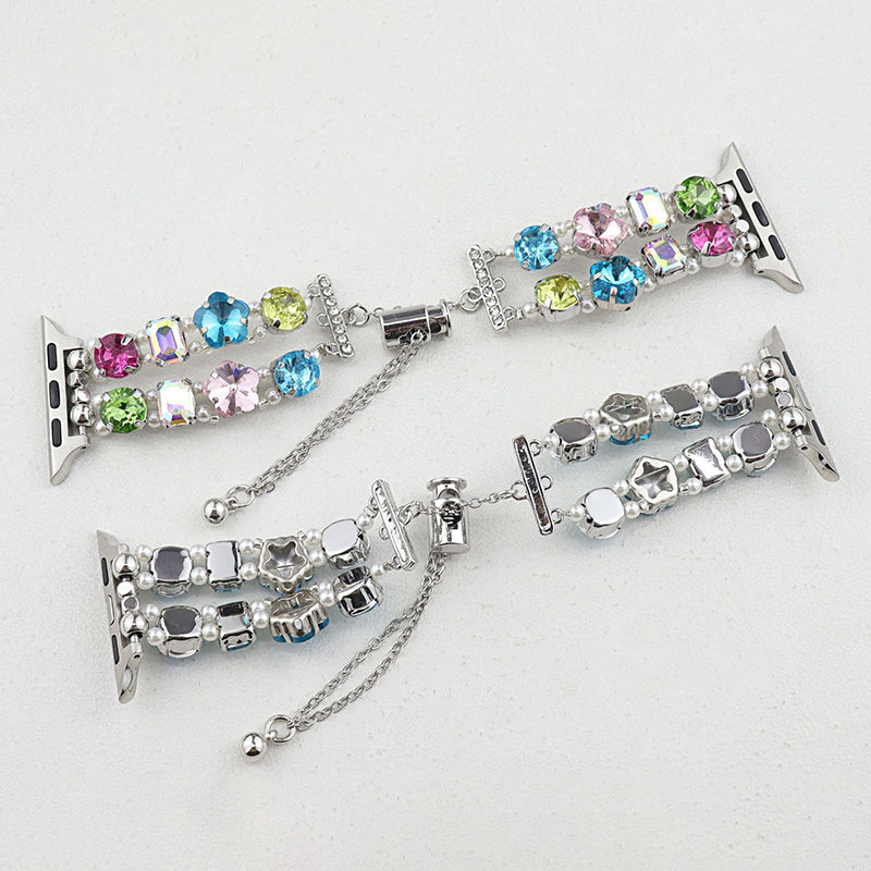 Upgrade your Apple Watch with our Double Row Diamond Watch Band. Featuring a stunning dual row of sparkling diamonds, this watch band exudes sophistication and elegance. Make a statement and elevate your style with this luxurious and fashionable accessory.