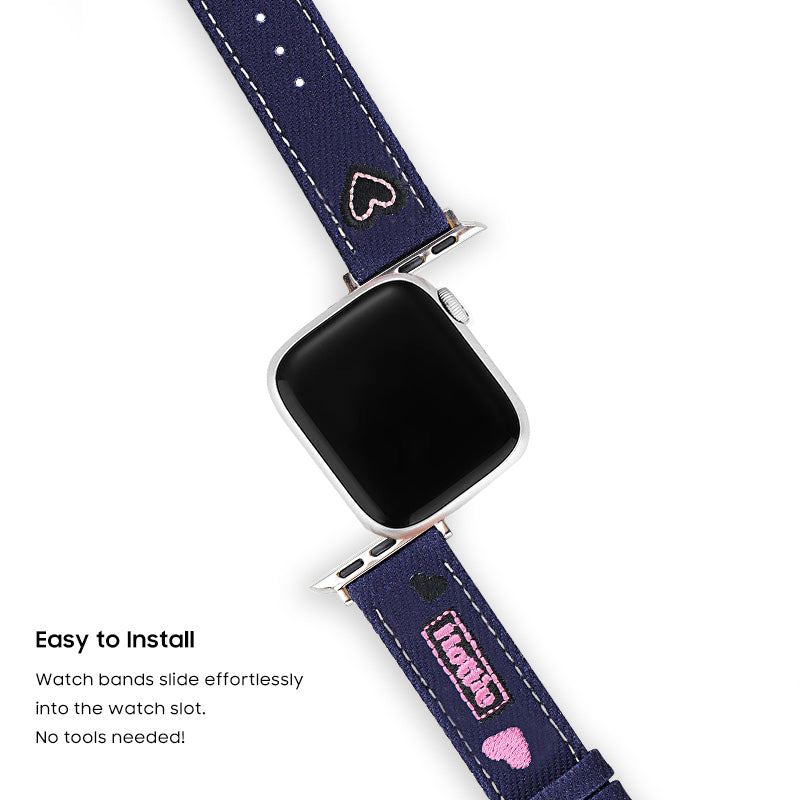 Enhance your style and stand out with this heart embroidered denim watch band designed for your Apple Watch. Made of sturdy denim fabric and heart embroidered design, the band is practical and beautiful, scratch-resistant and wear-resistant. Available in 2 colors for a unique look.