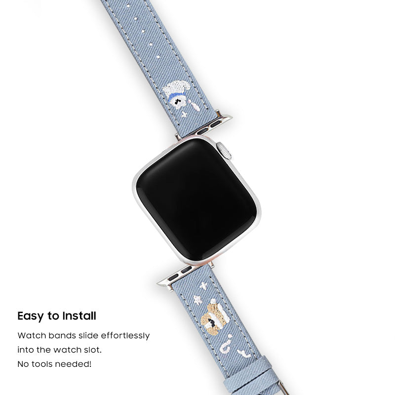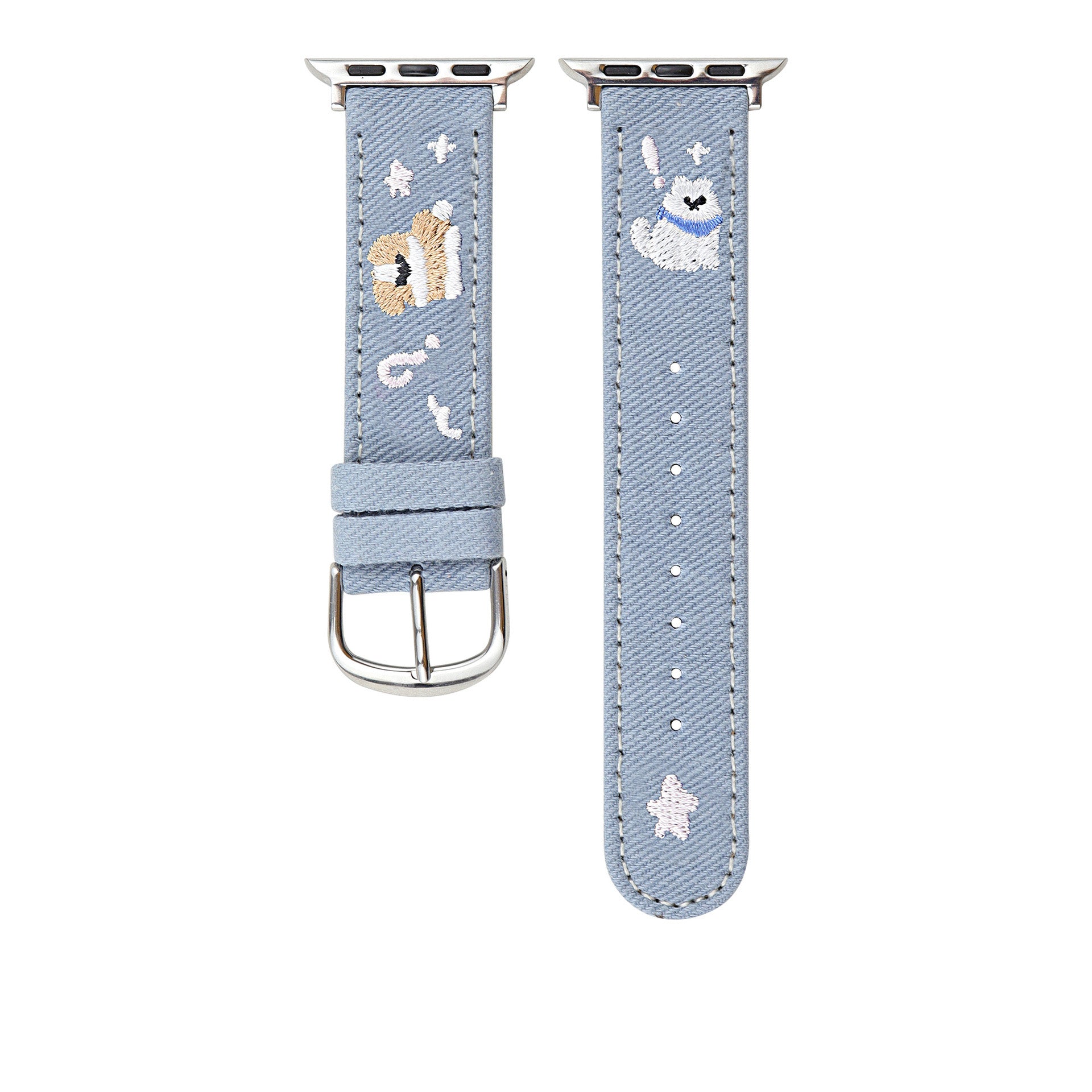 Enhance your style and stand out with this Puppy and Stars embroidered denim watch band designed for your Apple Watch. Made of sturdy denim fabric and Puppy and Stars embroidered design, the band is practical and beautiful, scratch-resistant and wear-resistant. Available in 2 colors for a unique look.