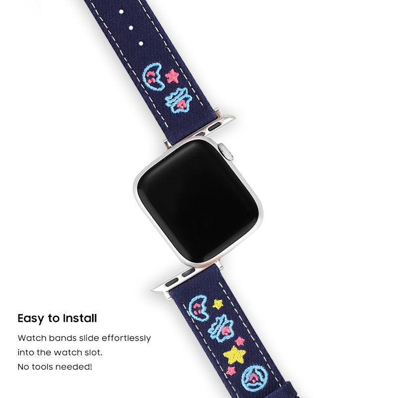 Enhance your style and stand out with this Stars embroidered denim watch band designed for your Apple Watch. Made of sturdy denim fabric and Stars embroidered design, the band is practical and beautiful, scratch-resistant and wear-resistant. Available in 2 colors for a unique look.