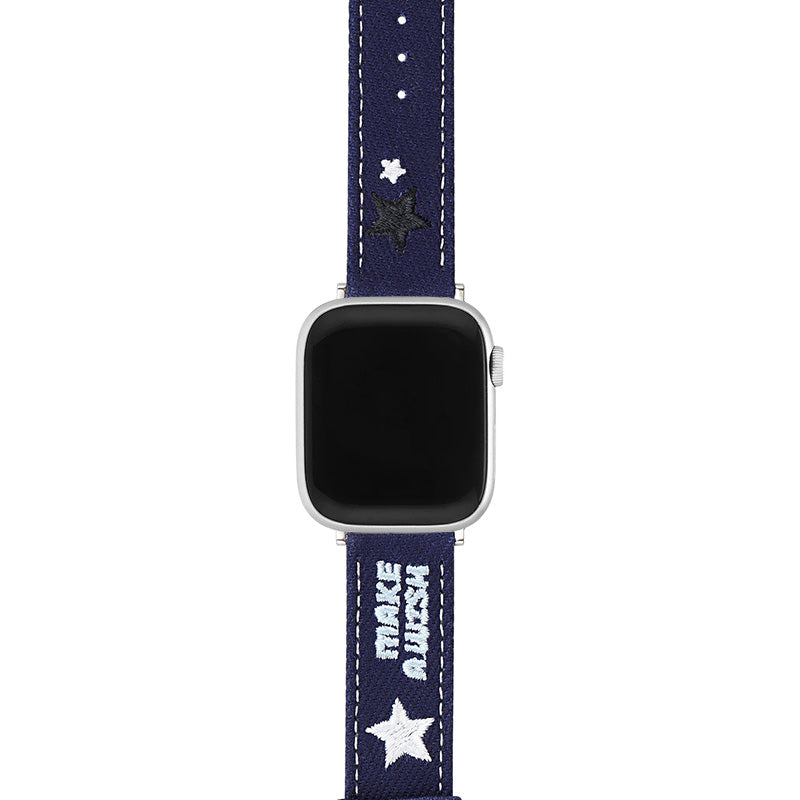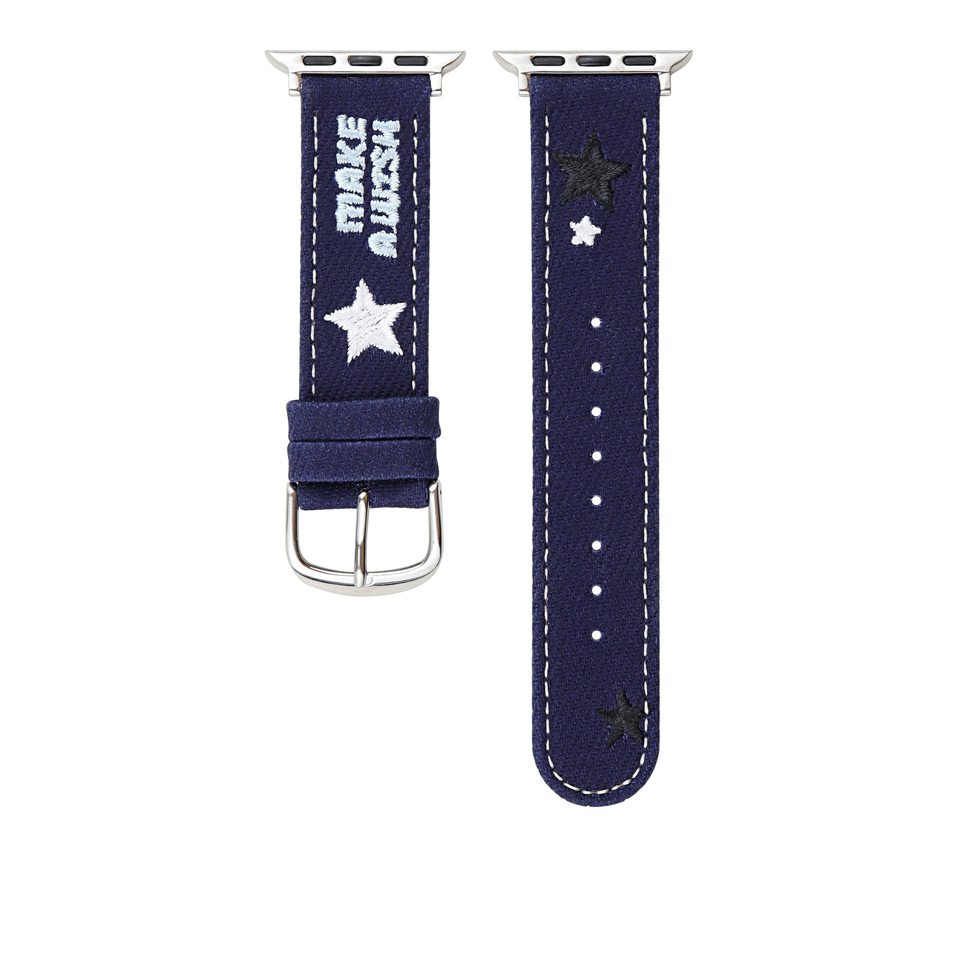 Enhance your style and stand out with this Stars embroidered denim watch band designed for your Apple Watch. Made of sturdy denim fabric and Stars embroidered design, the band is practical and beautiful, scratch-resistant and wear-resistant. Available in 2 colors for a unique look.