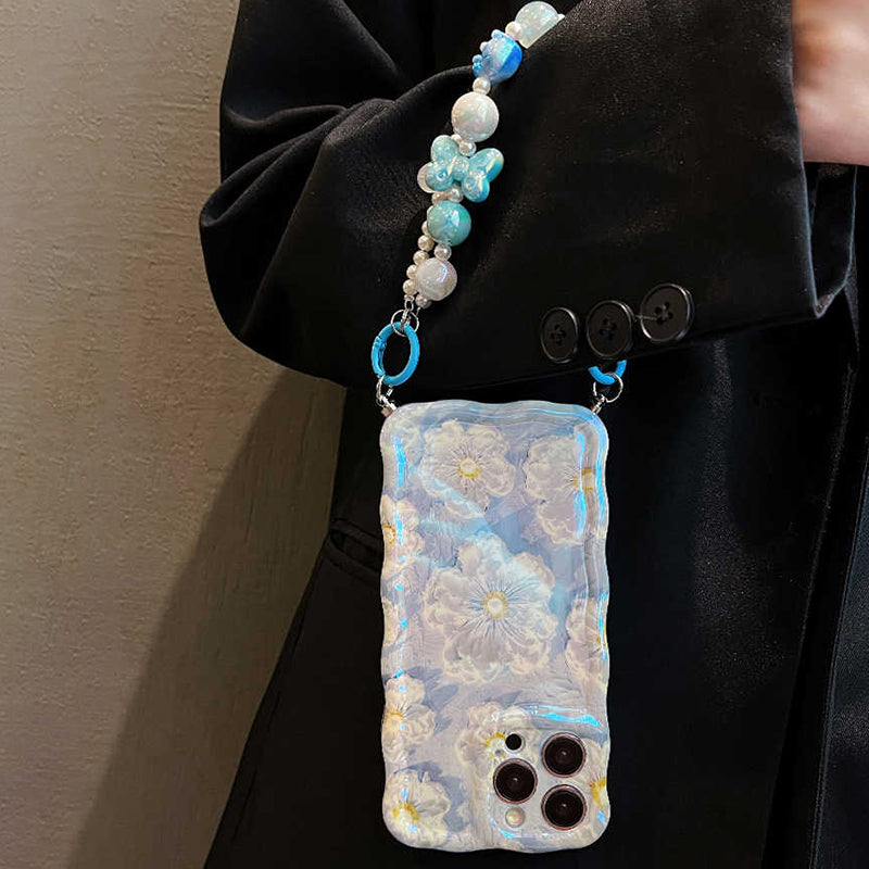 iPhone Lanyard Series | Blue Daisy Oil Painting Design Phone Case