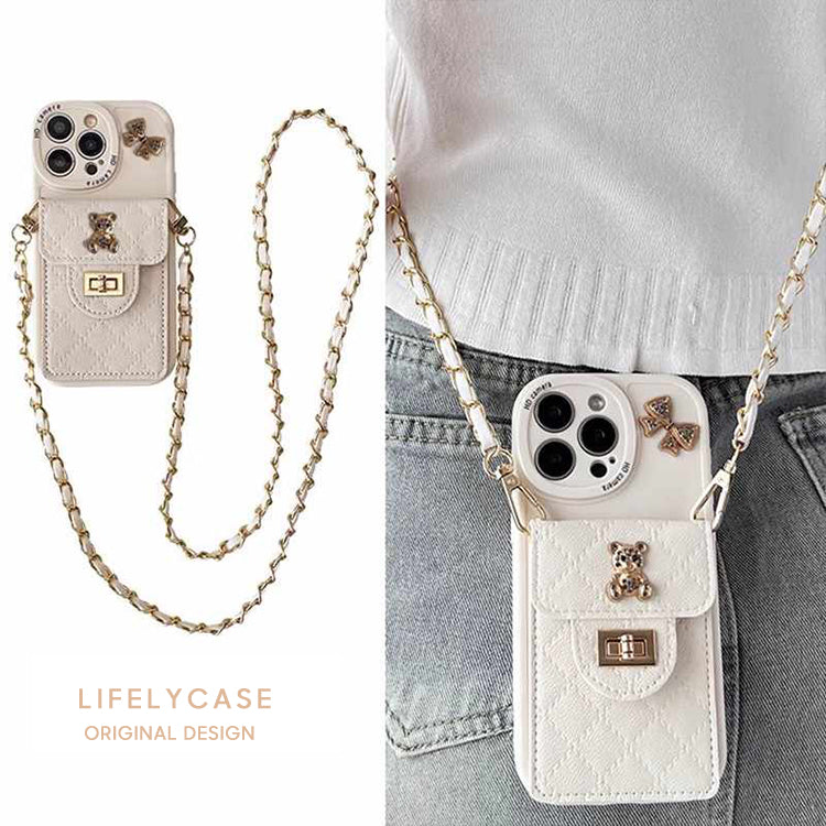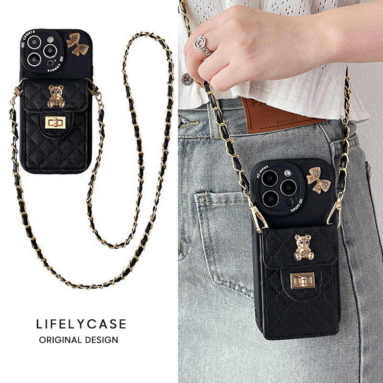 iPhone Lanyard Series | Genuine Leather Card Holder Phone Case [bear and Bow Accessories]