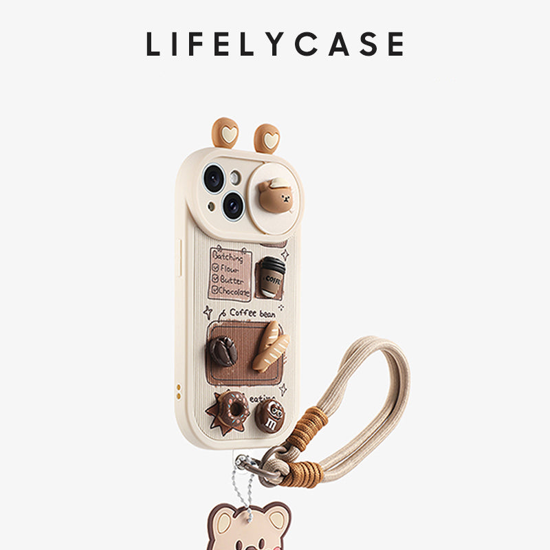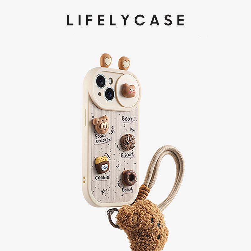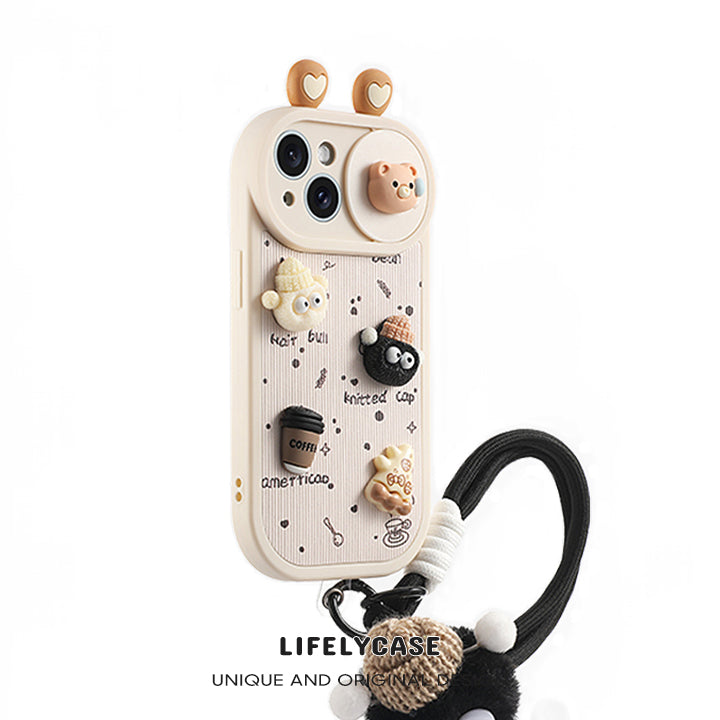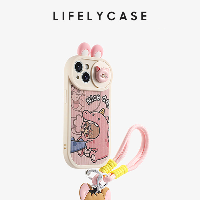 iPhone Lanyard Series | Cartoon phone case with lens sliding window design