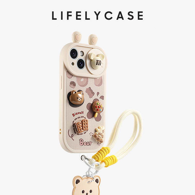 iPhone Lanyard Series | Cartoon phone case with lens sliding window design