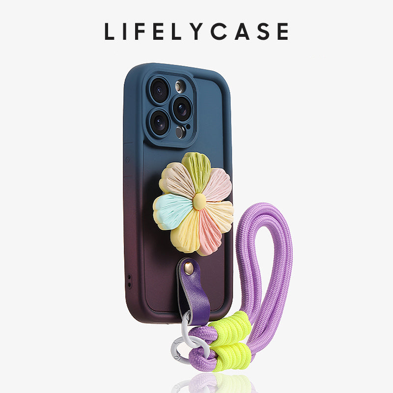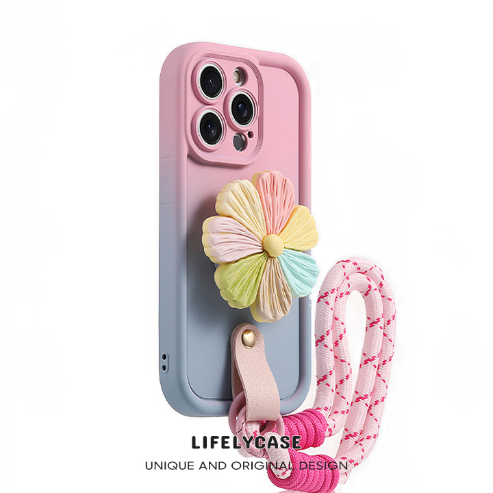 iPhone Lanyard Series | Gradient Design Liquid Silicone Phone Case with Phone Holder