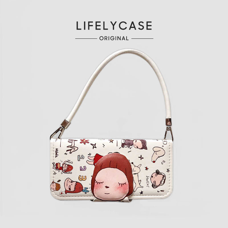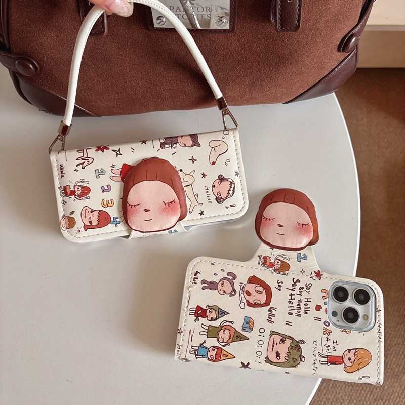 iPhone Lanyard Series | Cartoon Little Girl Flip Leather Phone Case