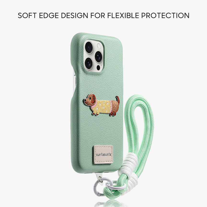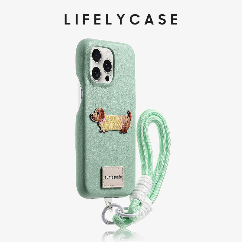 iPhone Lanyard Series | Cute Puppy Leather Phone Case