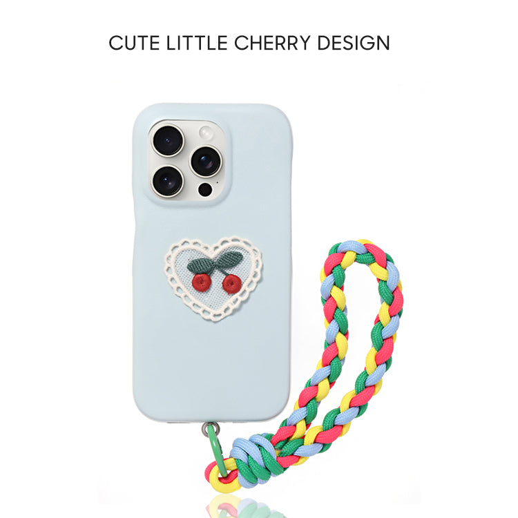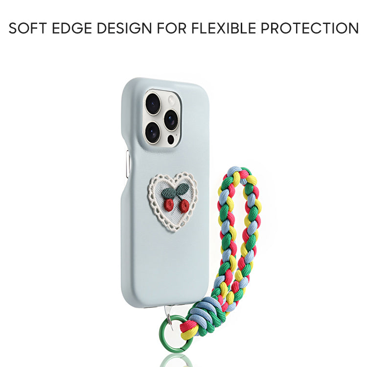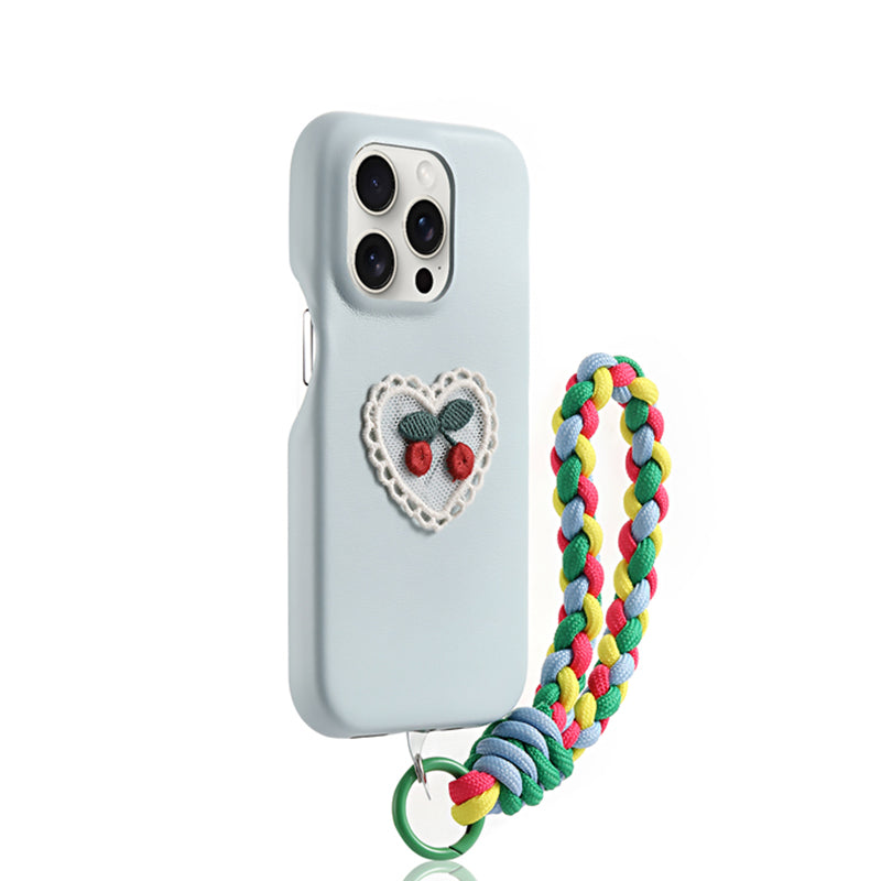iPhone Lanyard Series | Lace Heart Cherry Leather Phone Case