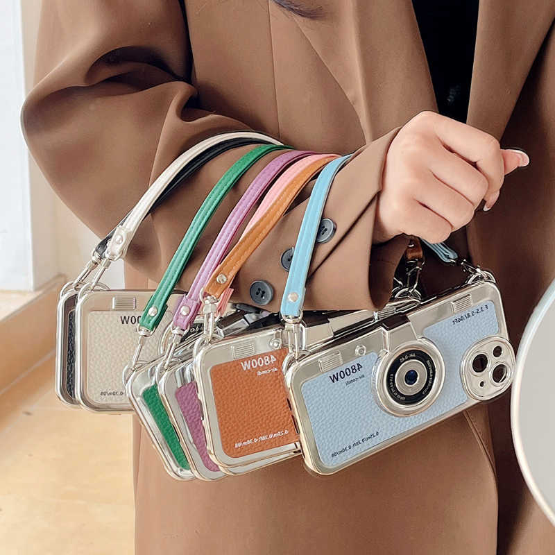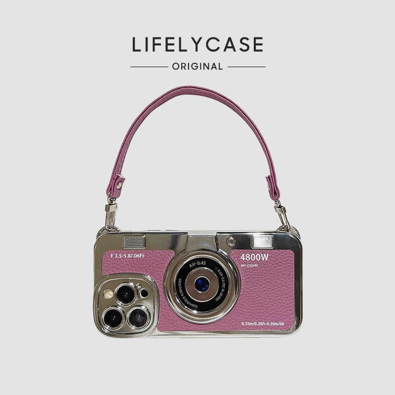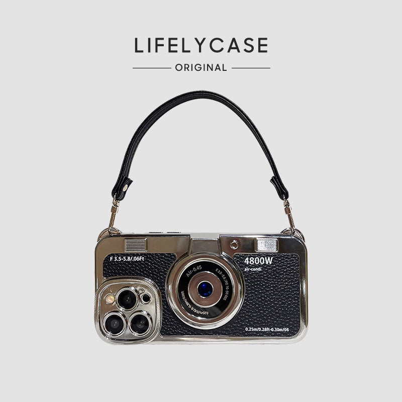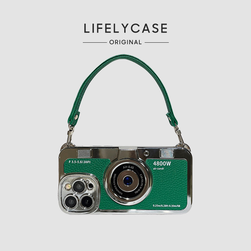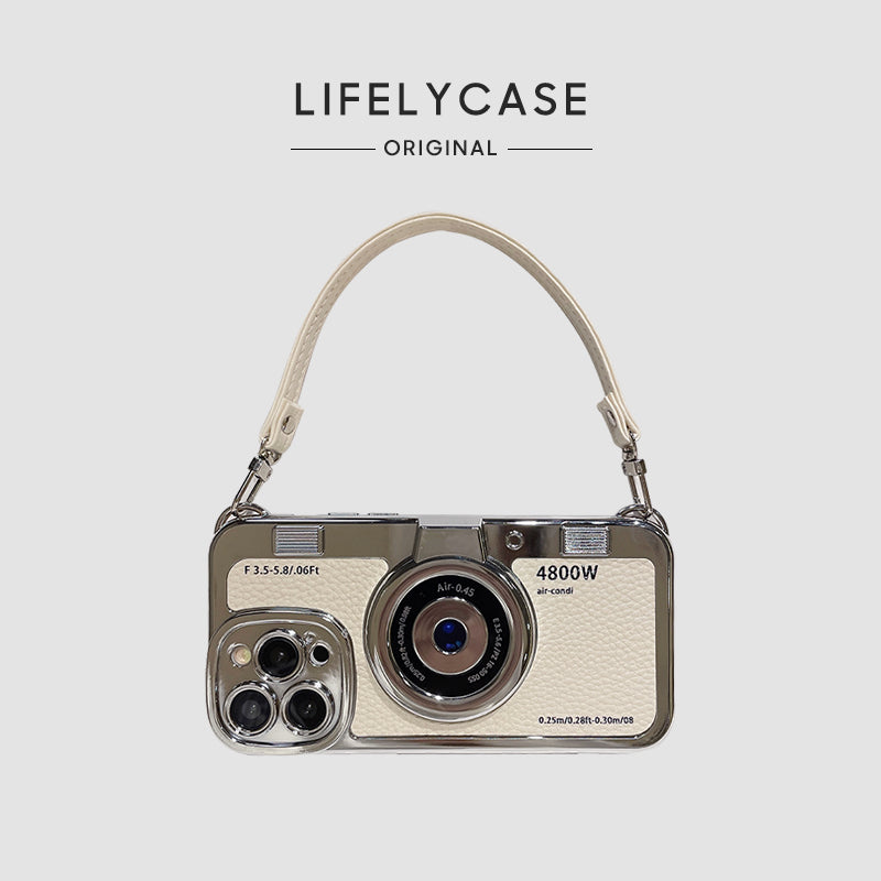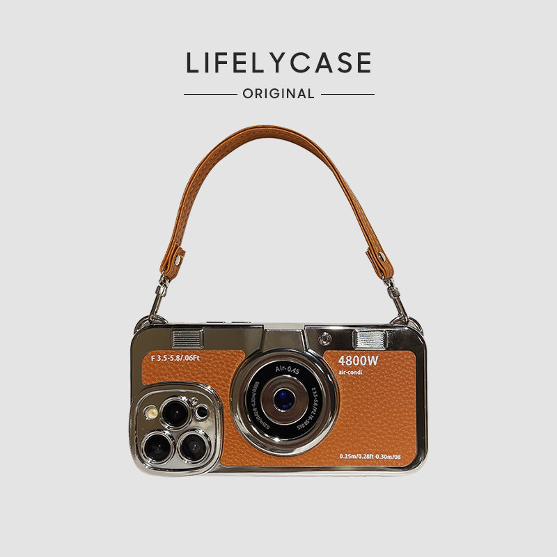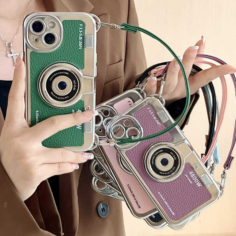 iPhone Lanyard Series | Retro Camera Design Leather Phone Case