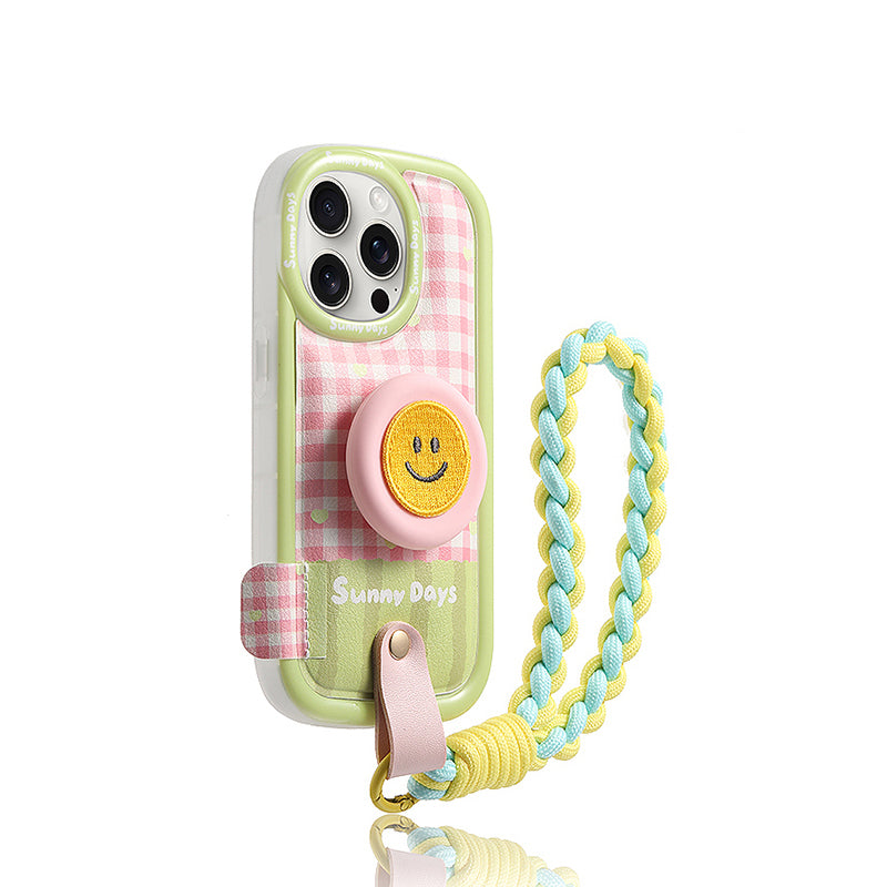 iPhone Lanyard Series | Smiley Face Stand Plaid Design Phone Case