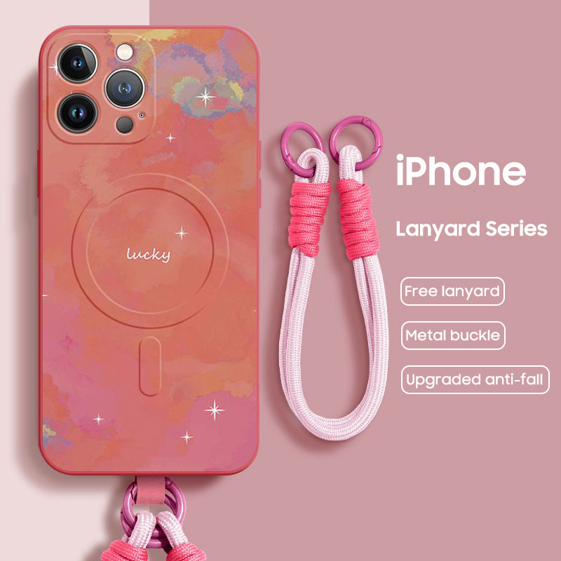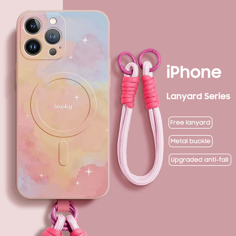 iPhone Lanyard Series | Smudge Gradient Design Liquid Silicone MagSafe Phone Case
