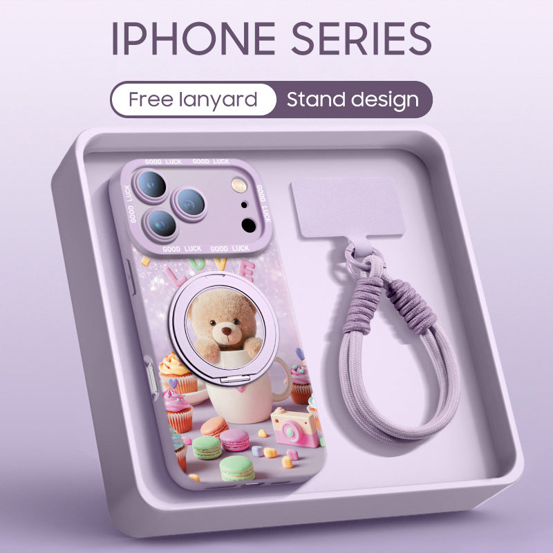 iPhone Lanyard Series | Bear Phone Case with Rotating Stand Design