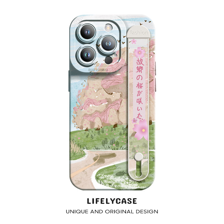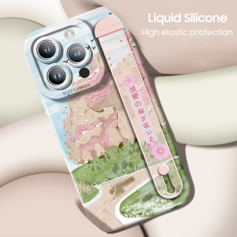 Série iPhone | Étui de bracelet en silicone liquide fleurs de cerisier