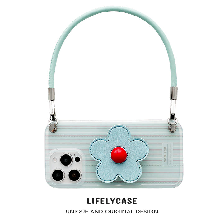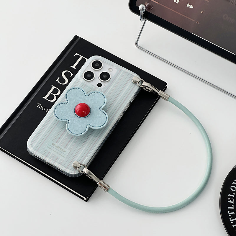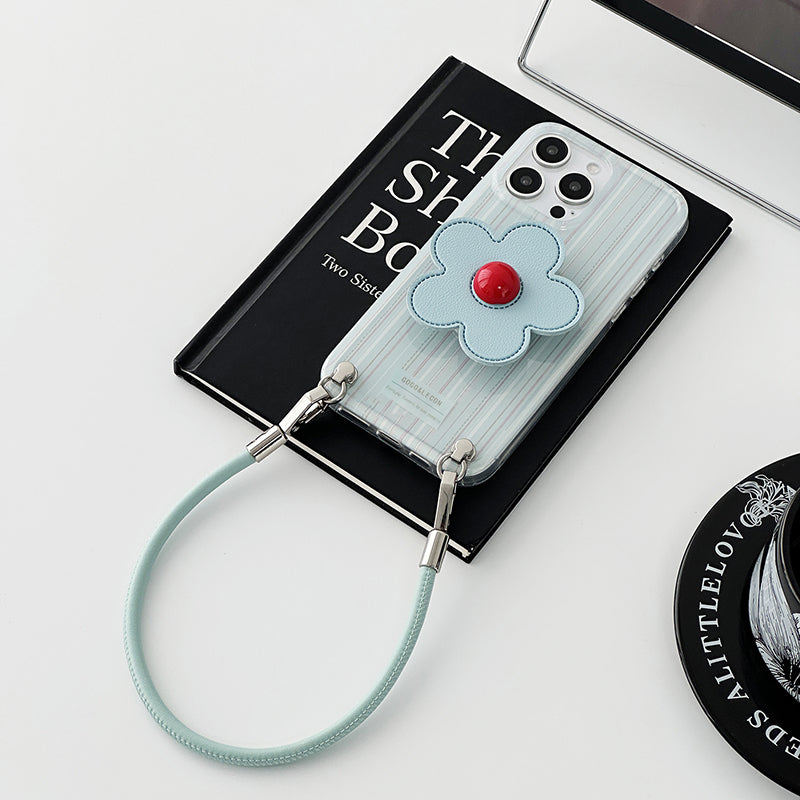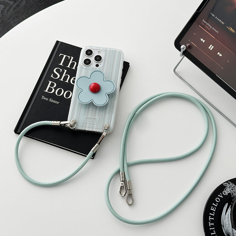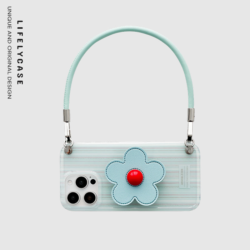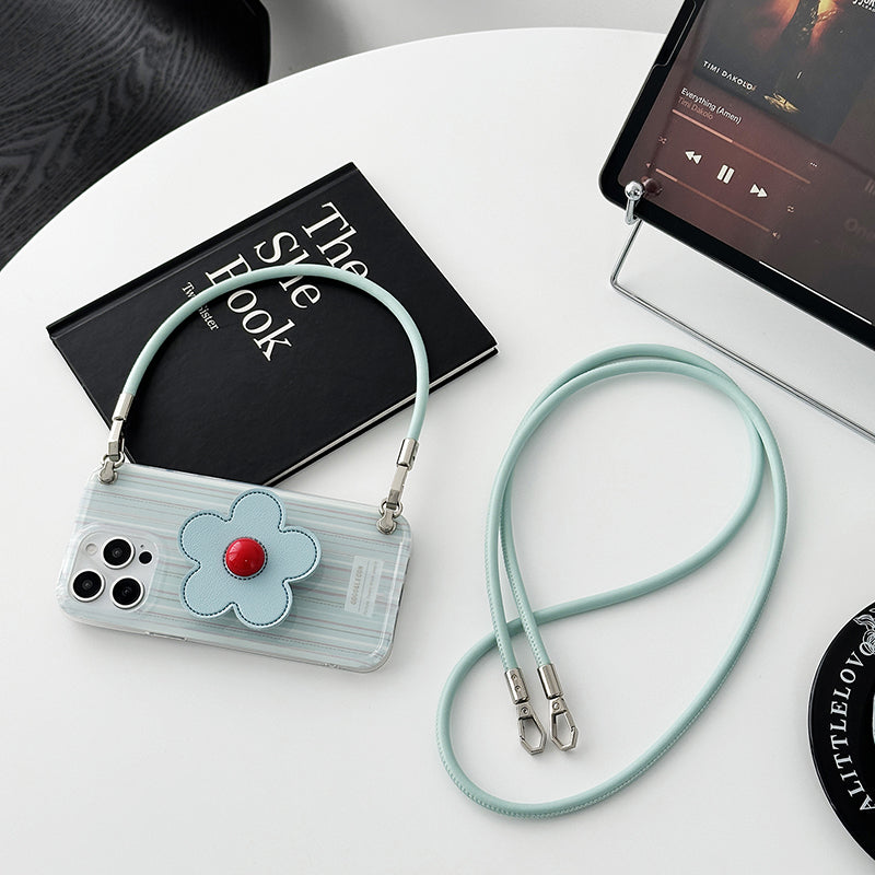 iPhone Lanyard Series | Blue Flower Stand Phone Case