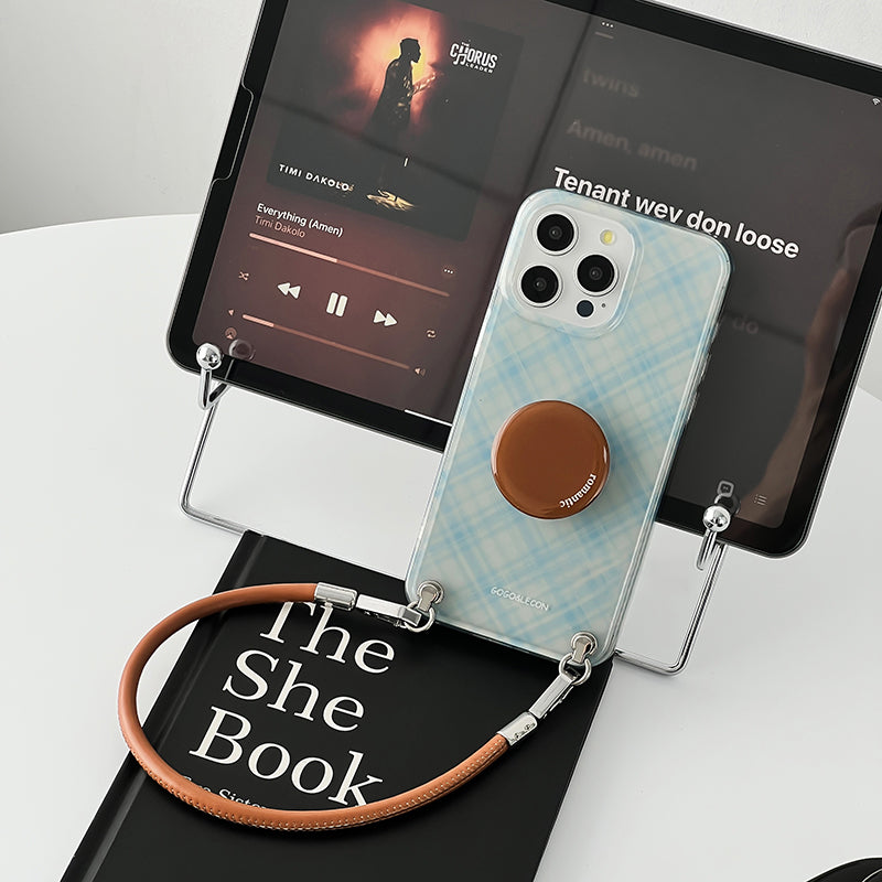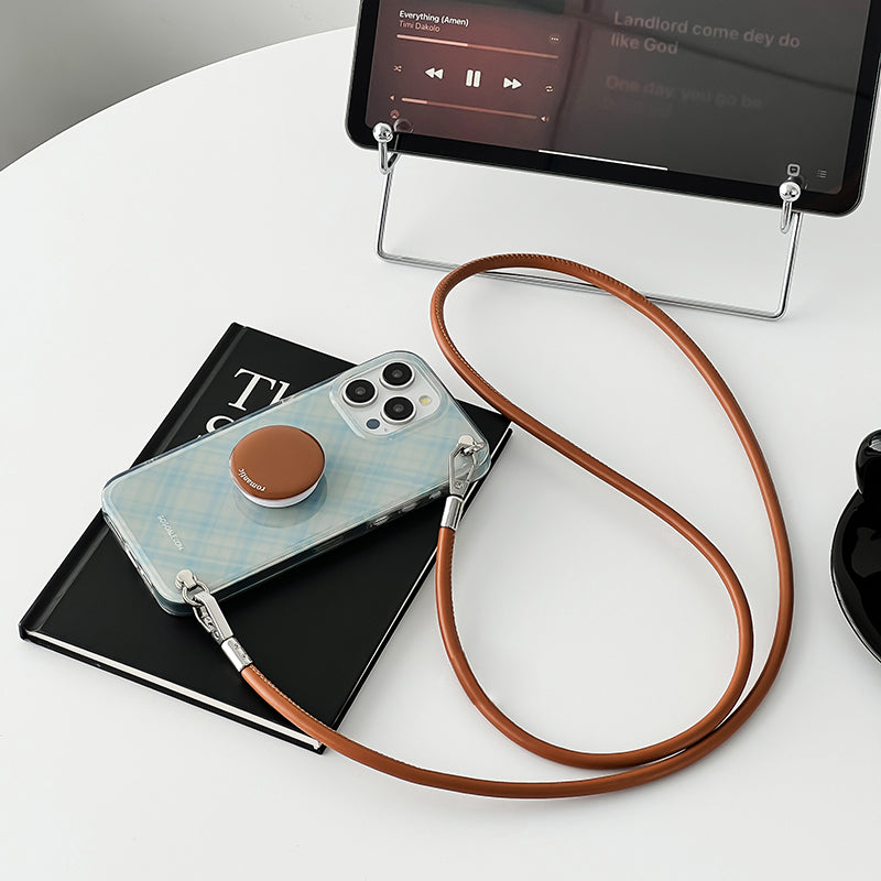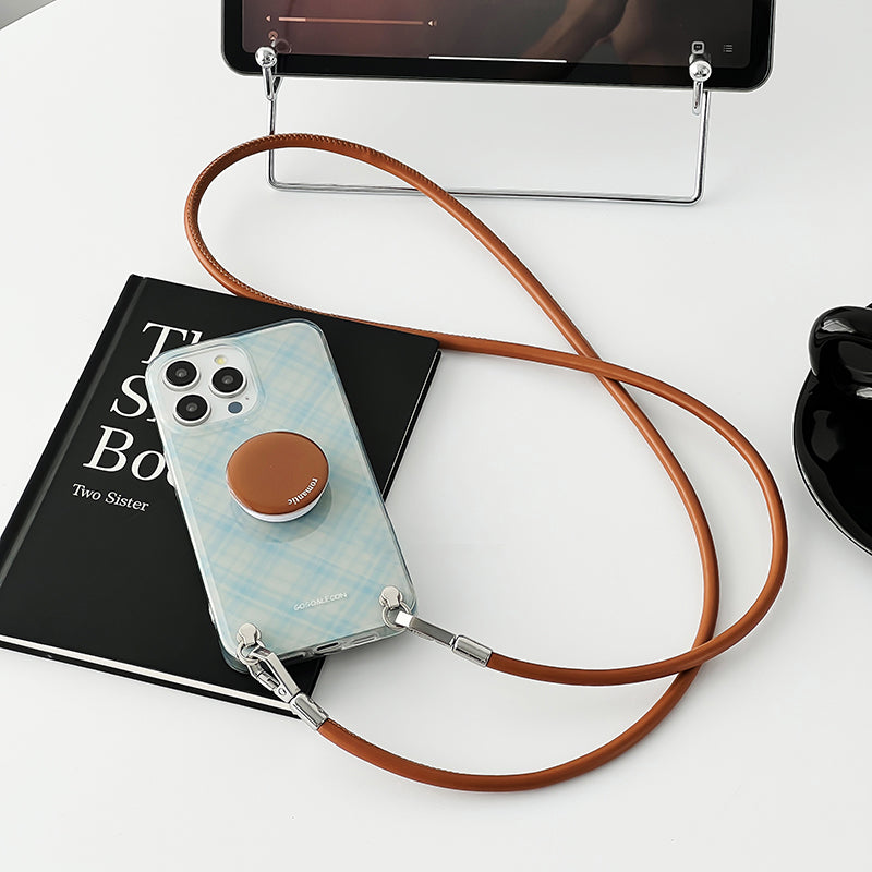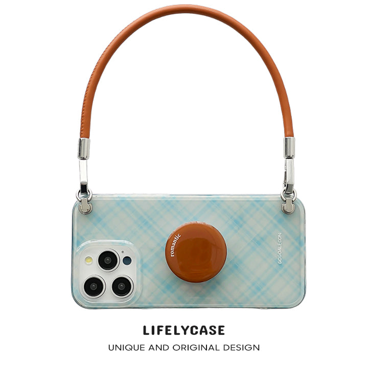 iPhone Lanyard Series | Brown Round Stand Plaid Phone Case