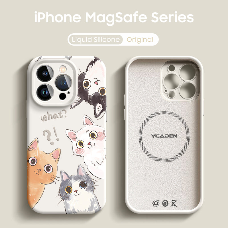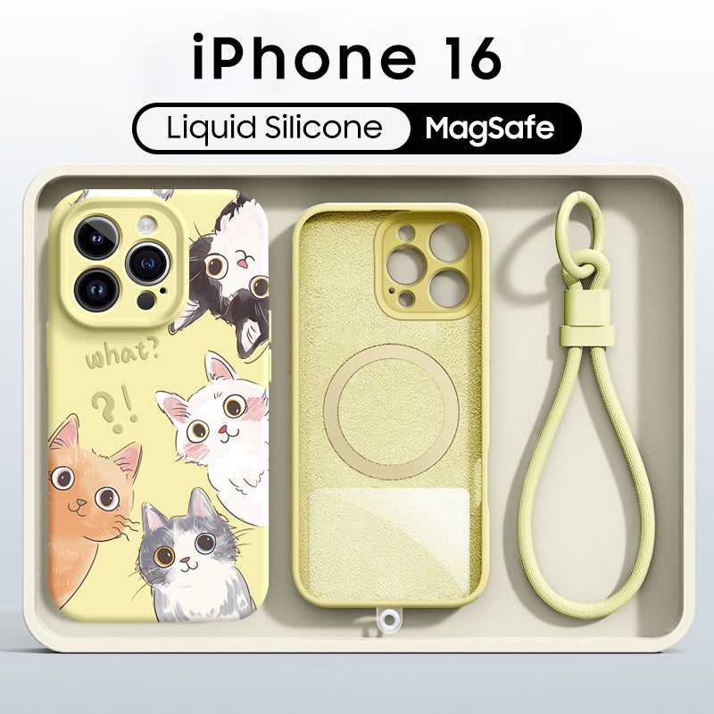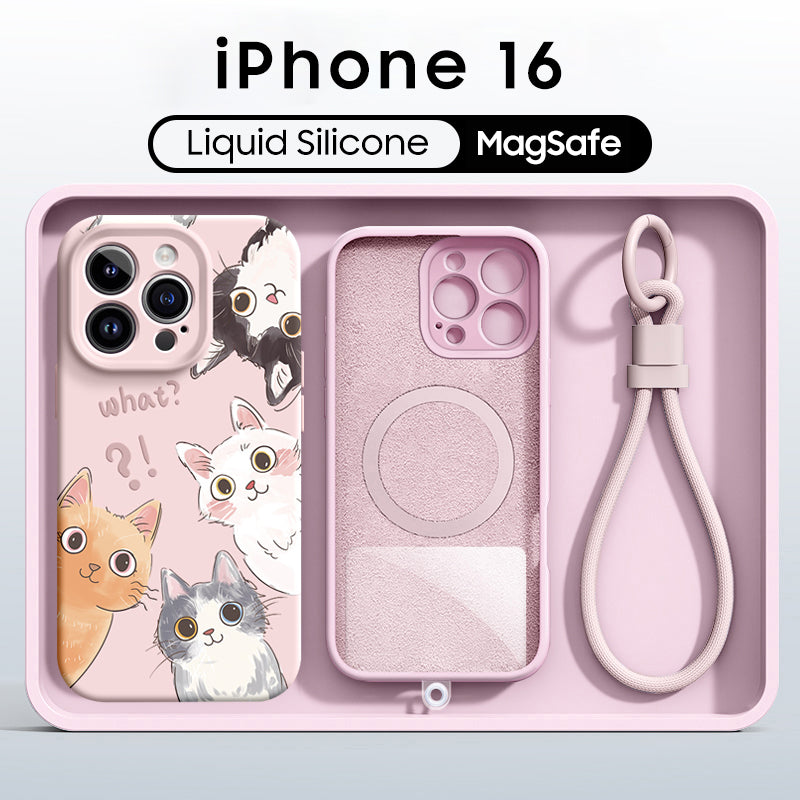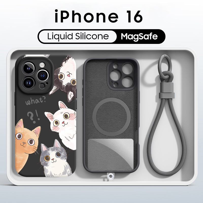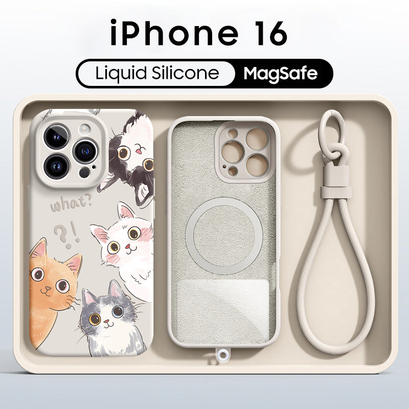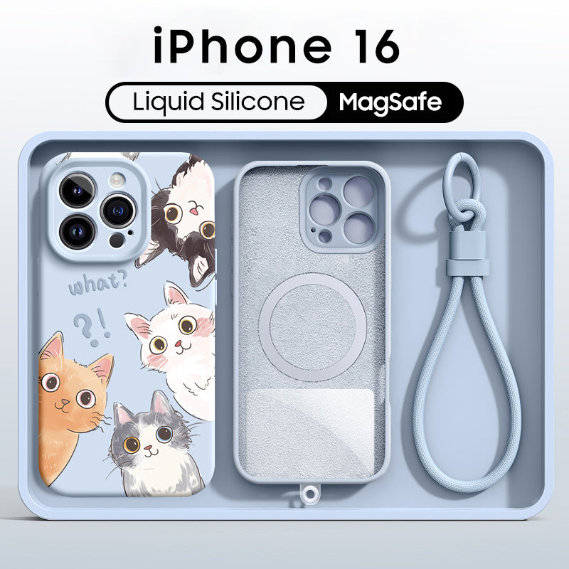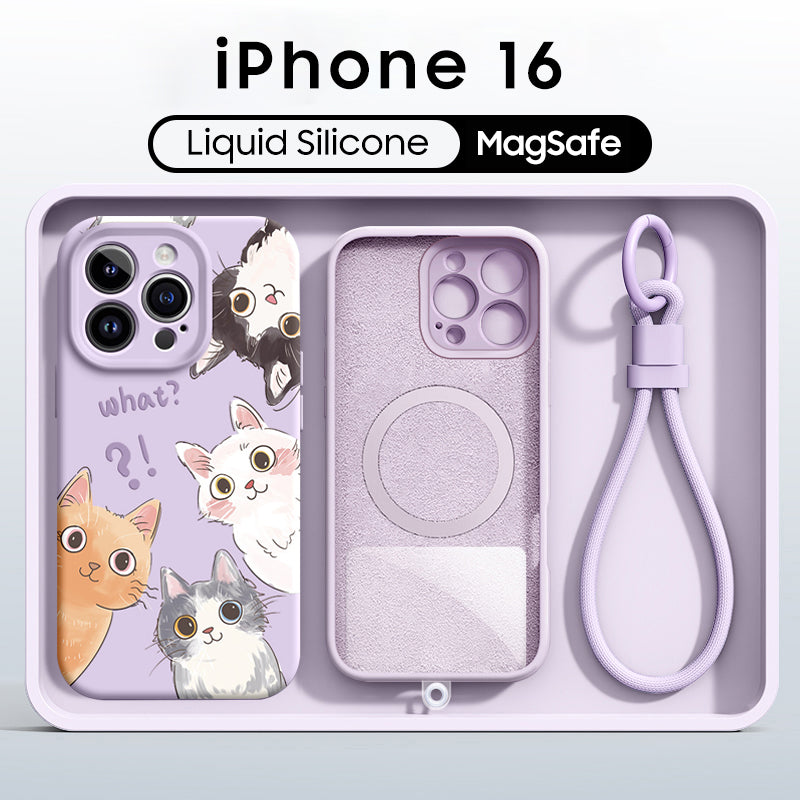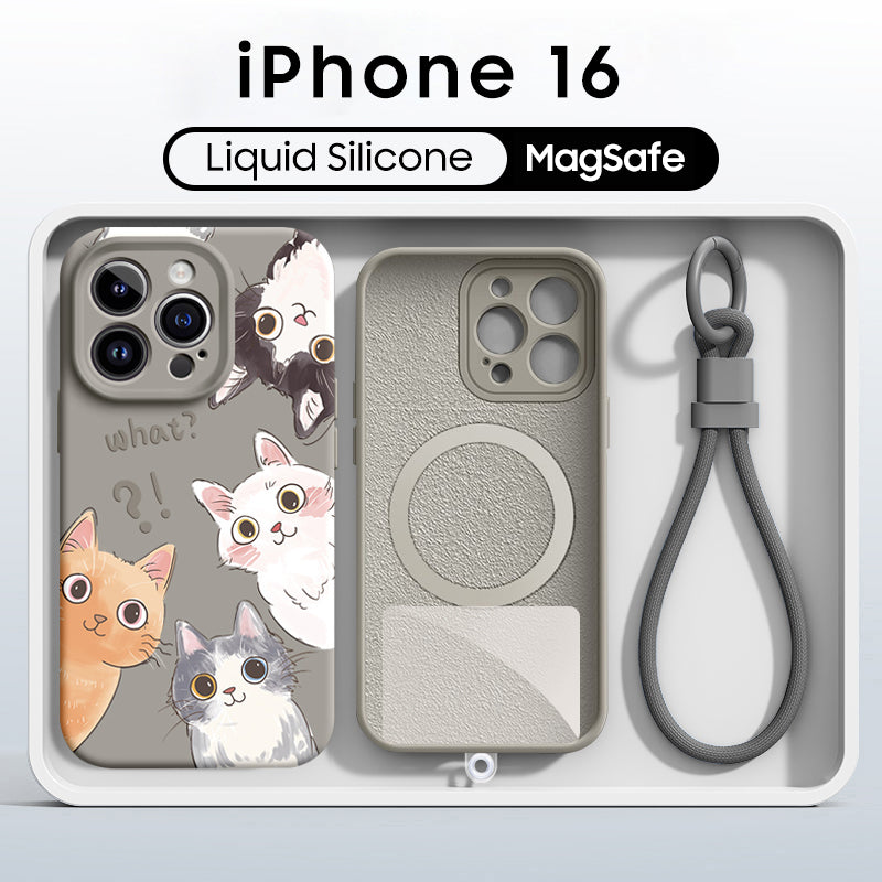iPhone Lanyard Series | Cute Cat Liquid Silicone MagSafe Phone Case