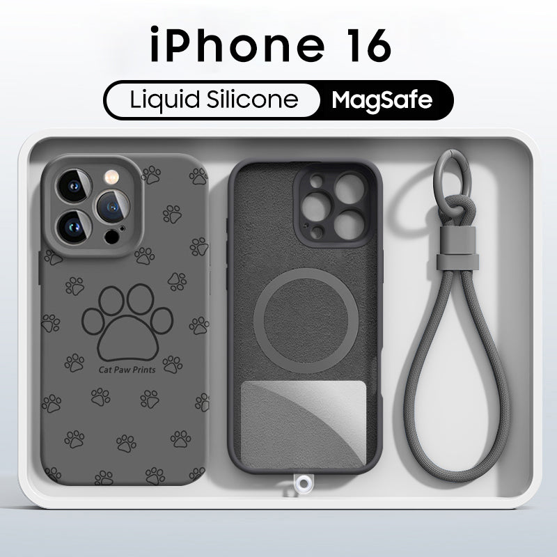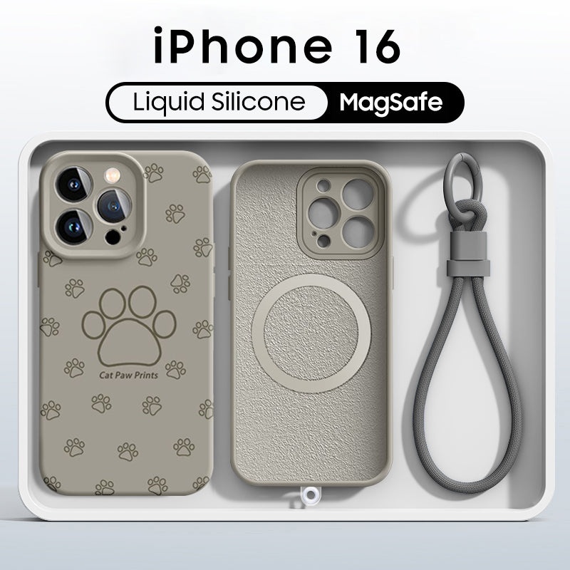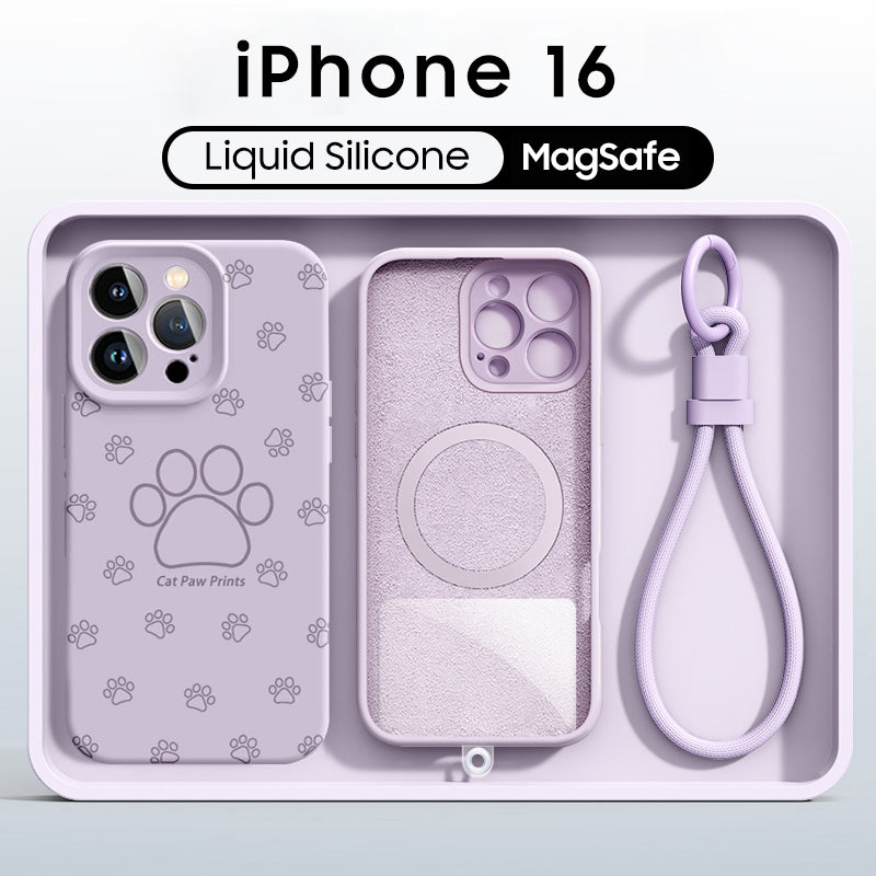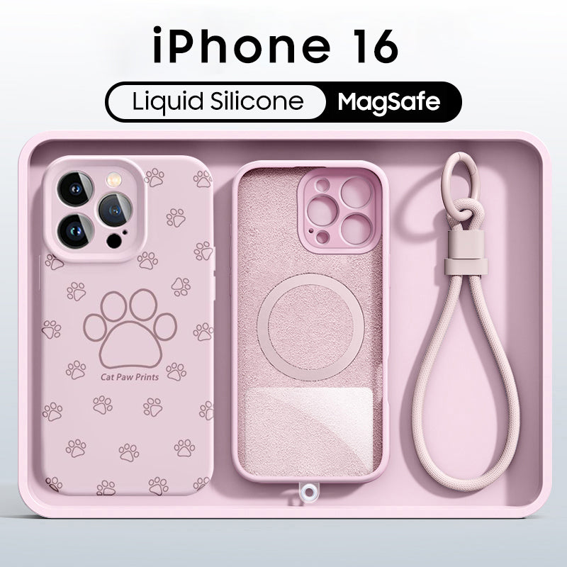 iPhone Lanyard Series | Cute Cat Paw Liquid Silicone MagSafe Phone Case