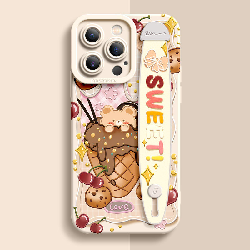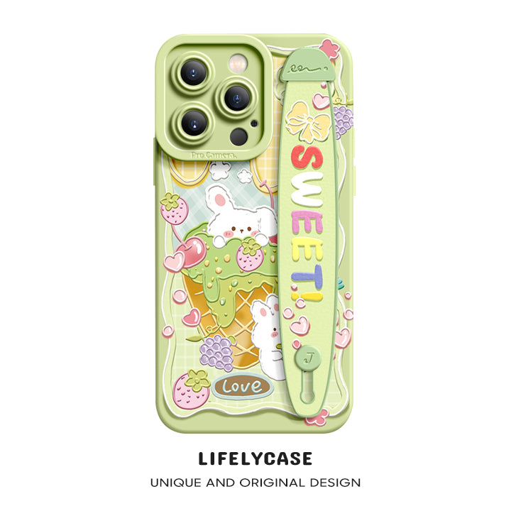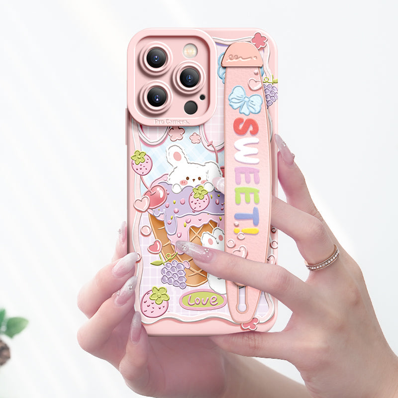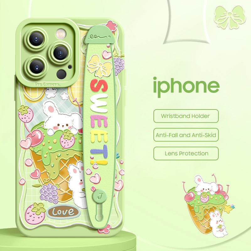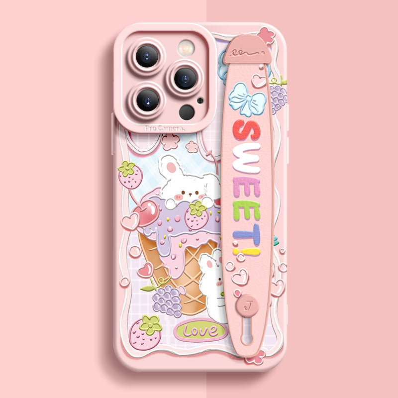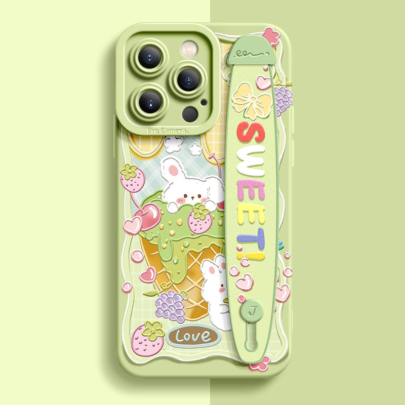 iPhone Series | “Cute Rabbit Bear” Liquid Silicone Wristband Phone Case