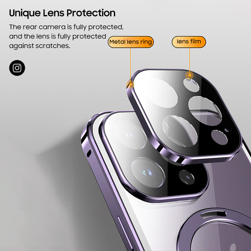 Protection intégrée double face, l'écran avant utilise un film en verre trempé anti-regard pour protéger l'écran des rayures et de l'usure, tout en n'affectant pas le contrôle du téléphone. Il a un toucher sensible et un déverrouillage rapide. La caméra arrière est entièrement protégée, avec une conception artisanale sophistiquée et une protection anti-rayures complète pour l'objectif. Le support de téléphone portable rotatif à 360° offre un maximum de confort pour votre vie quotidienne.