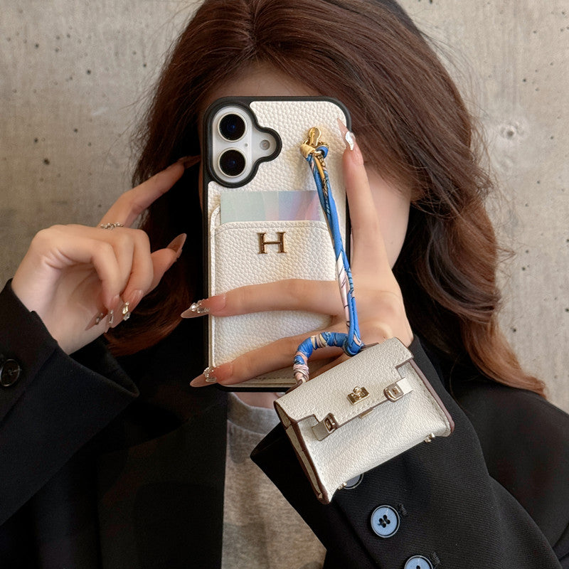 iPhone Lanyard Series | Genuine Leather Wallet Phone Case - Free Earphone Bag