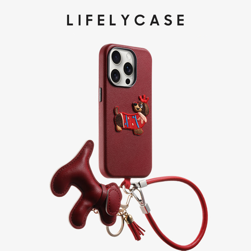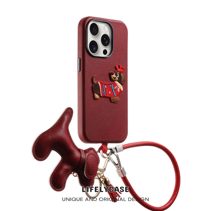 iPhone Lanyard Series | Genuine Leather Phone Case with Free Dachshund Pendant