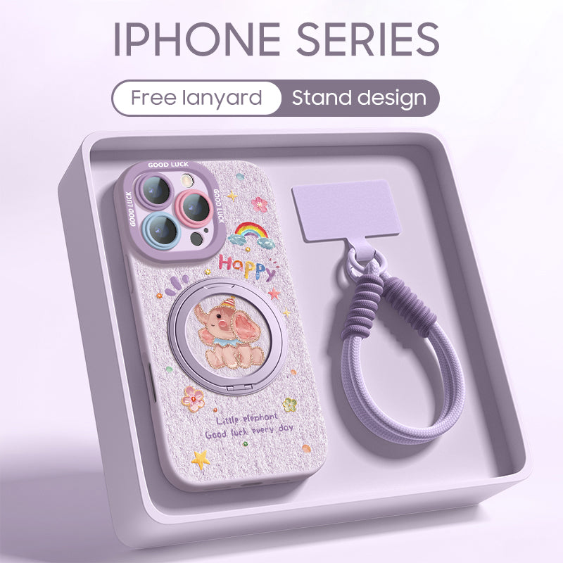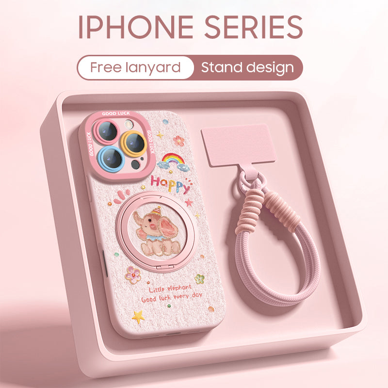 iPhone Lanyard Series | Magnetic Rotating Bracket Cartoon Phone Case