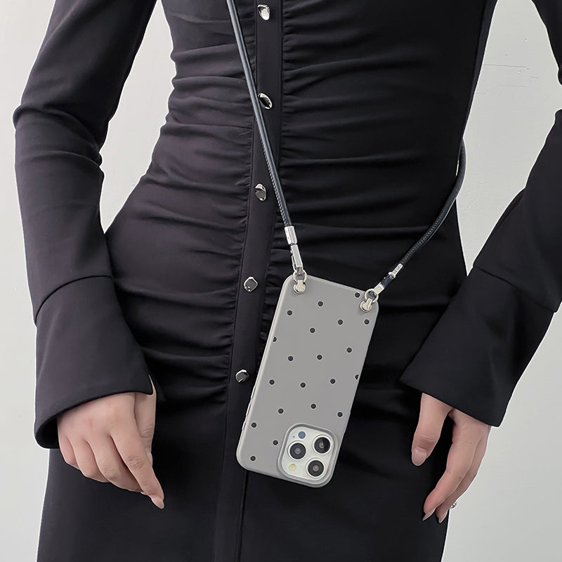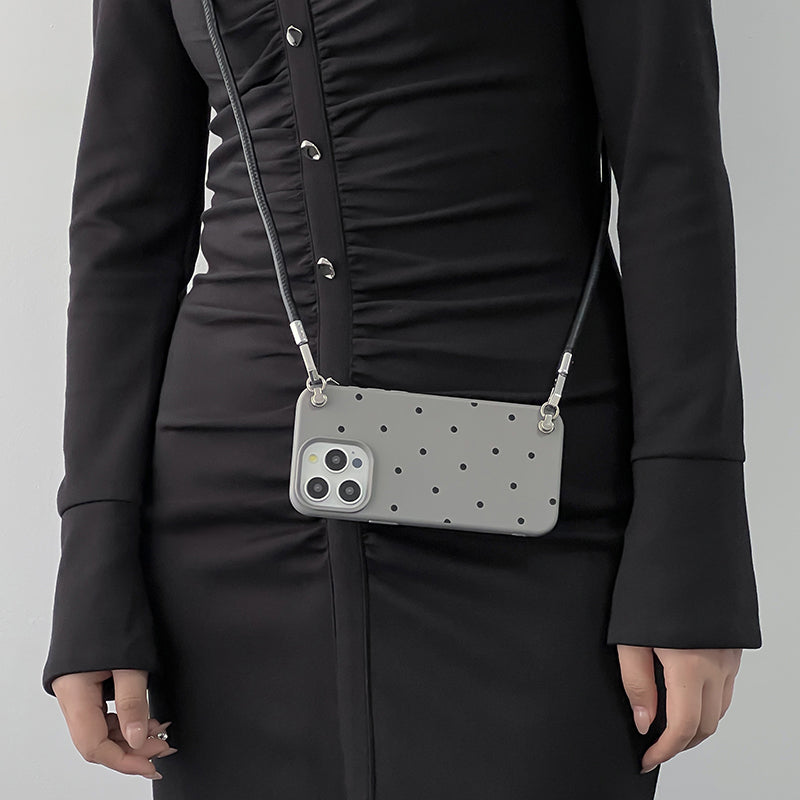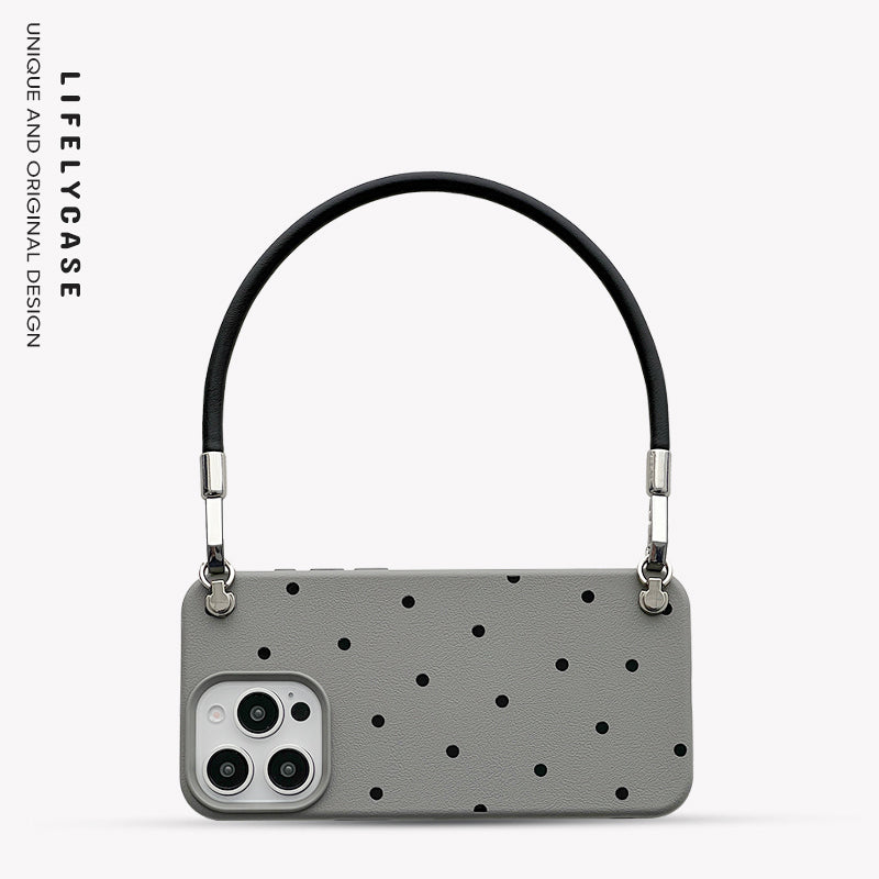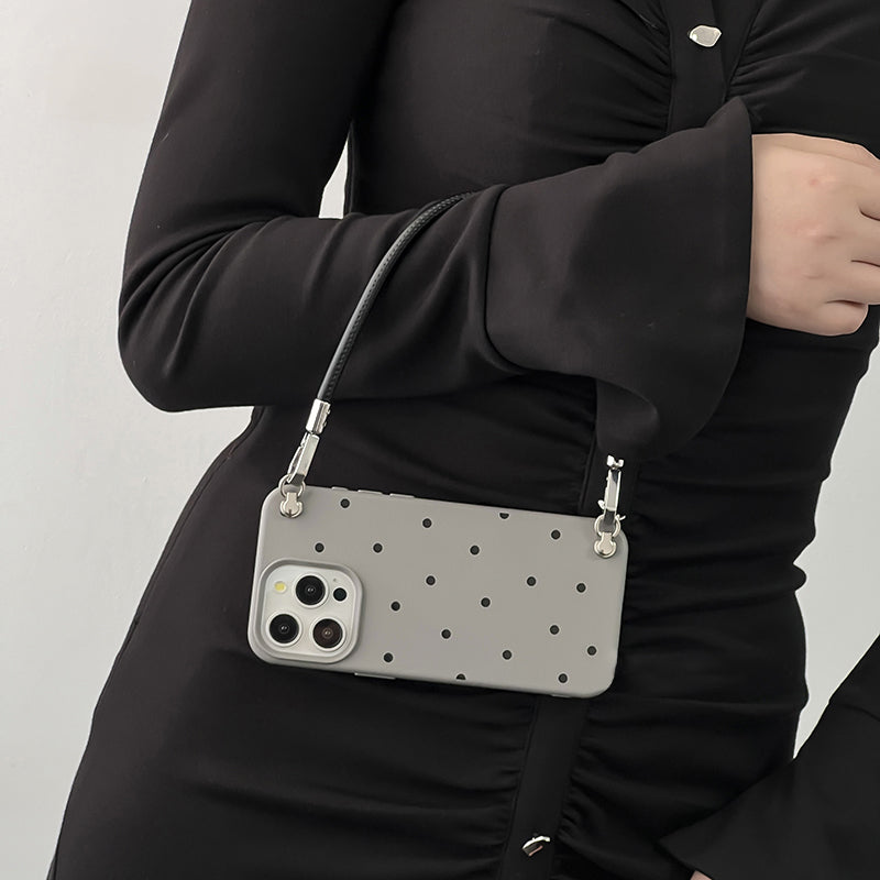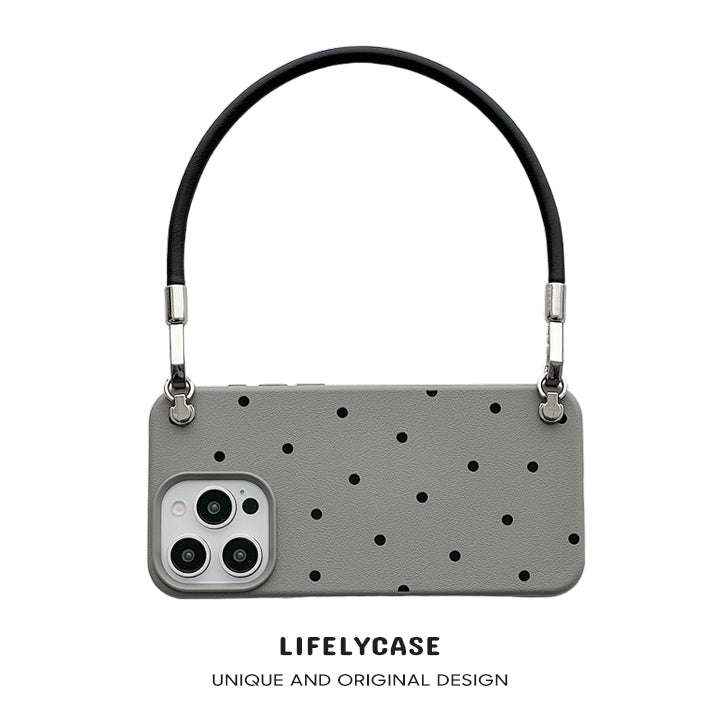 iPhone Lanyard Series | Polka Dot Design Leather Phone Case