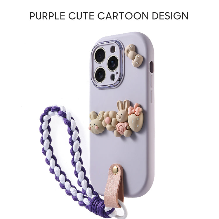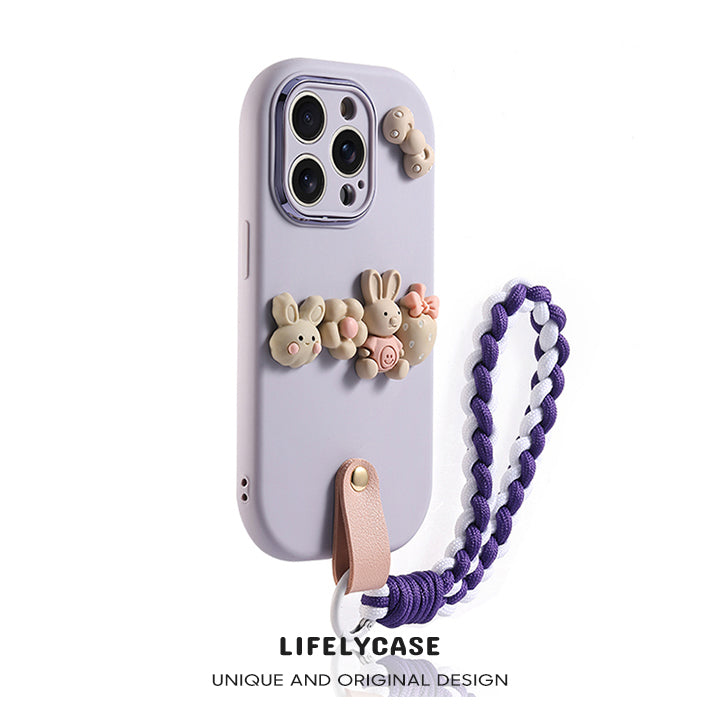 iPhone Lanyard Series | Cute Bunny Design Leather Phone Case