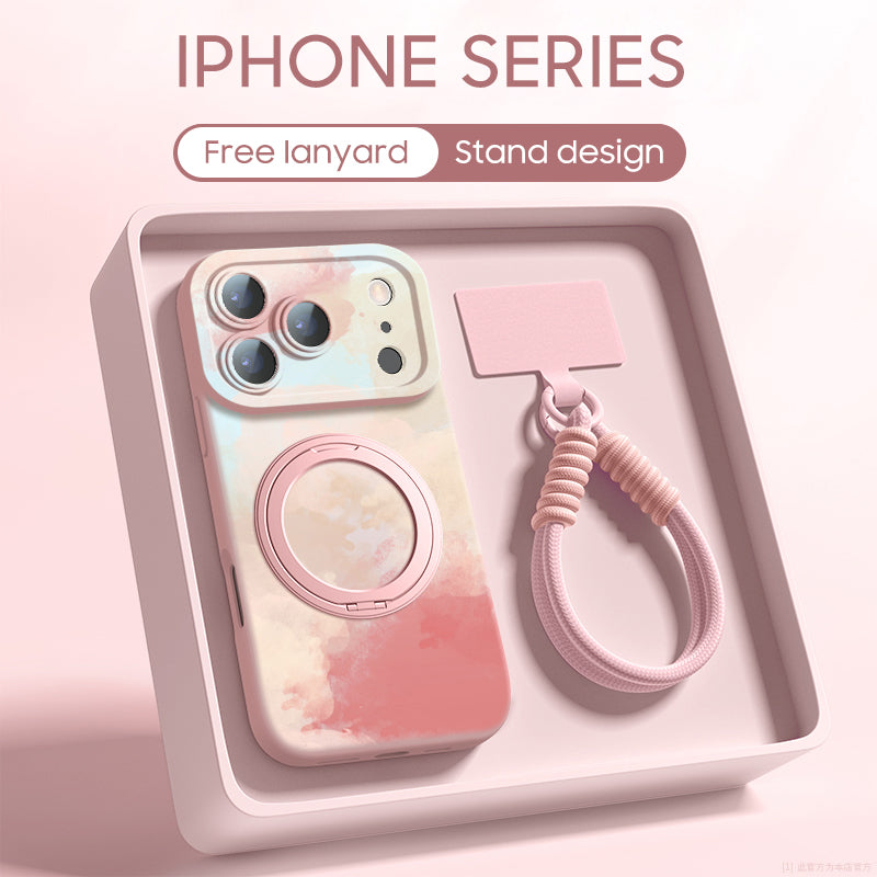 iPhone Lanyard Series | Watercolor Smudge Magnetic Rotating Bracket Phone Case