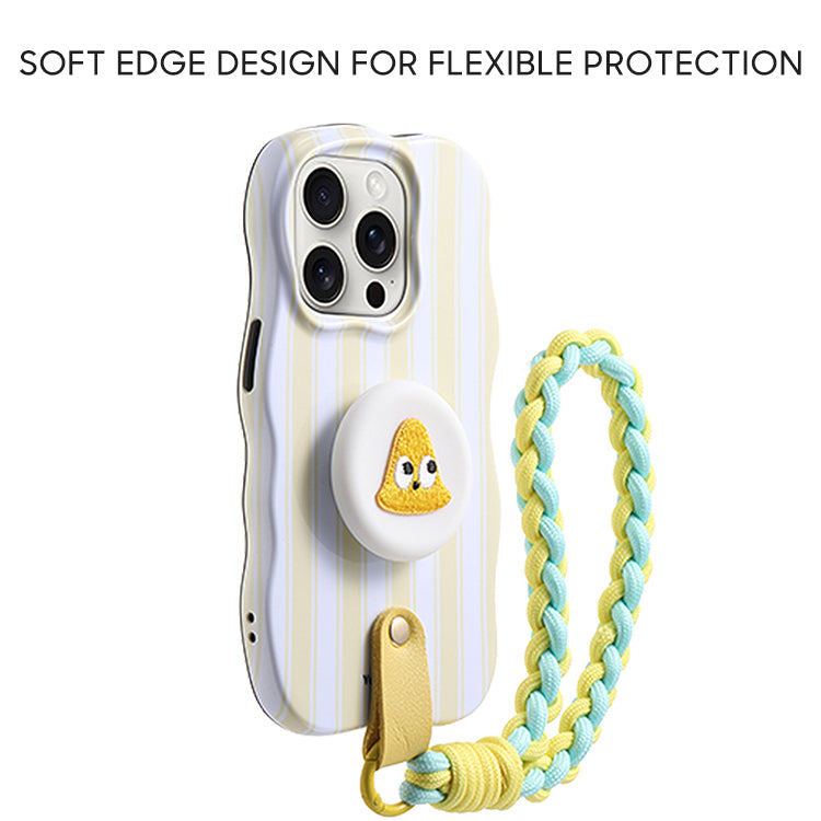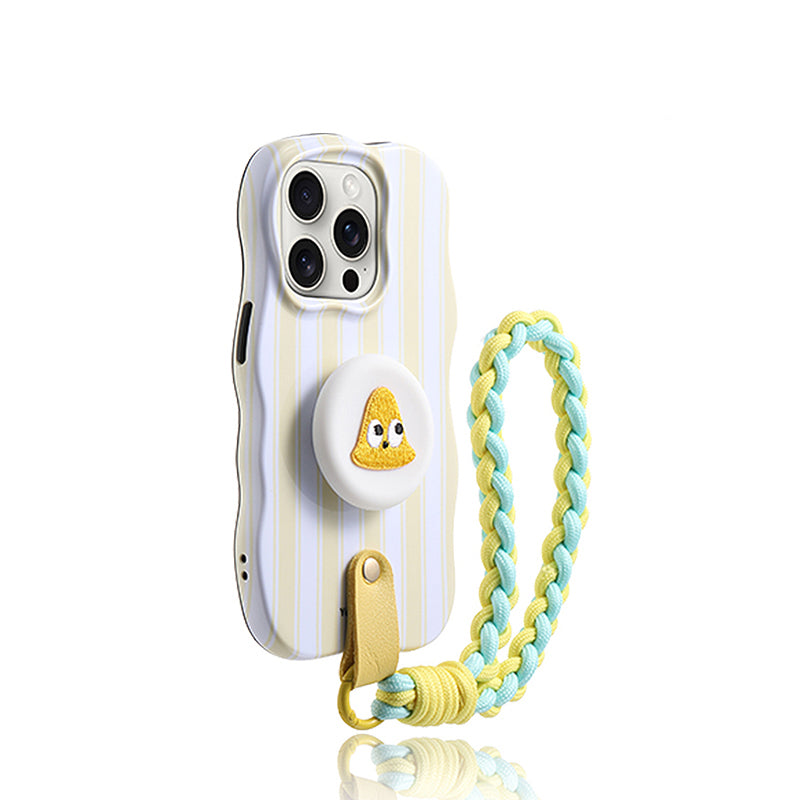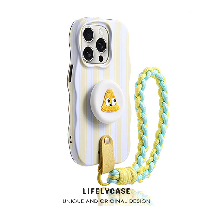 iPhone Lanyard Series | Yellow and White Stripes Stand Phone Case