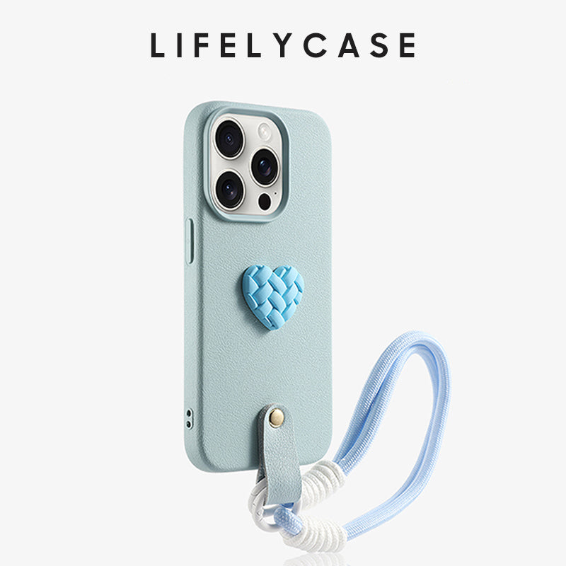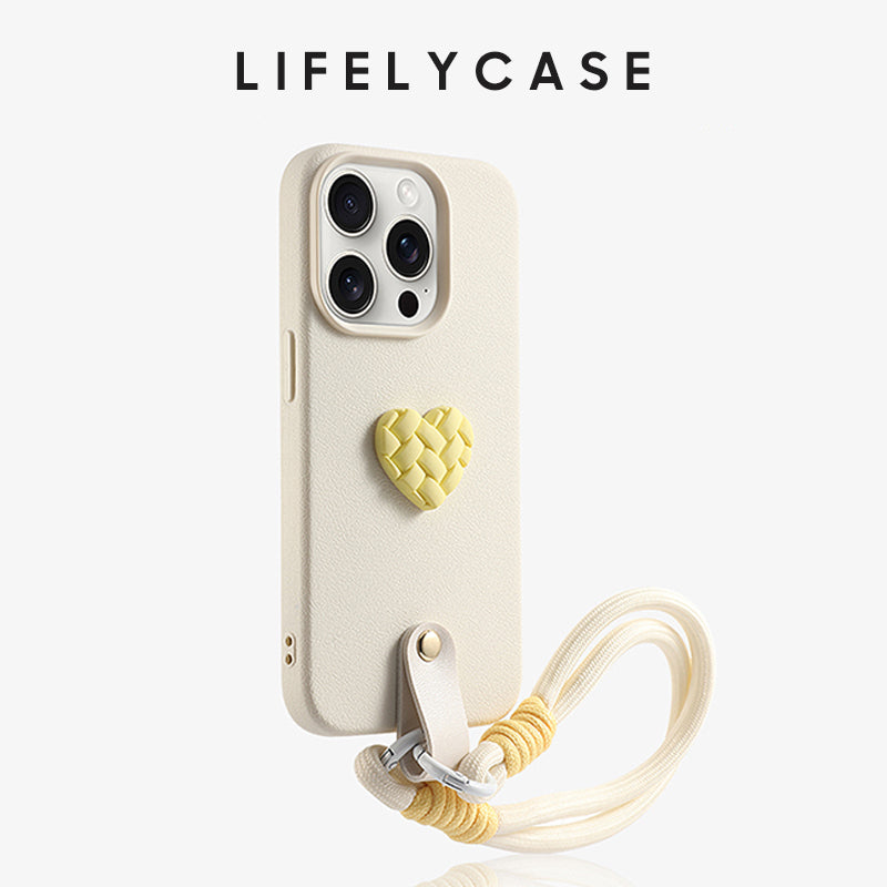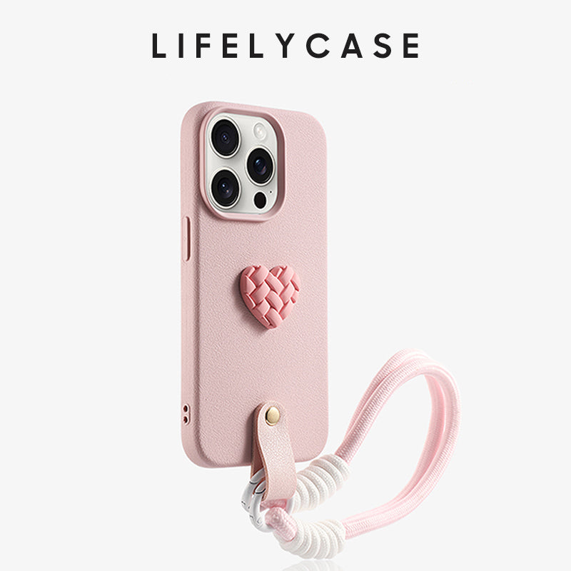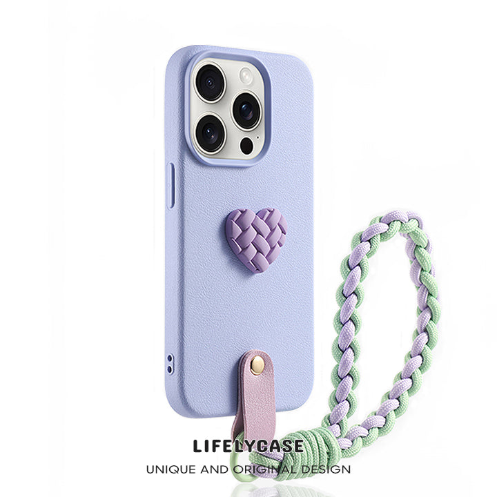 iPhone Lanyard Series | Woven Heart Genuine Leather Phone Case