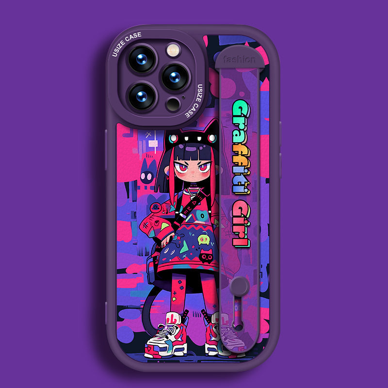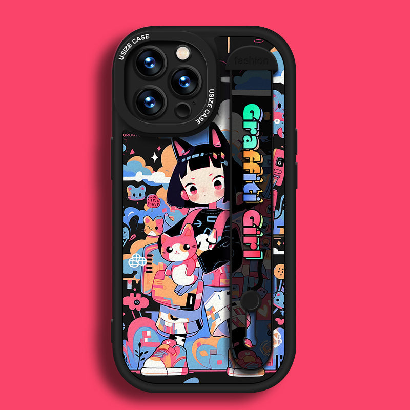 Vous en avez assez de la même coque de téléphone ? L'étui de téléphone avec bracelet en peau d'agneau de dessin animé vous apporte une expérience différente. Non seulement il a une apparence unique, mais aussi un support de dragonne flexible et réglable intégré. Idéal pour une utilisation n’importe où.